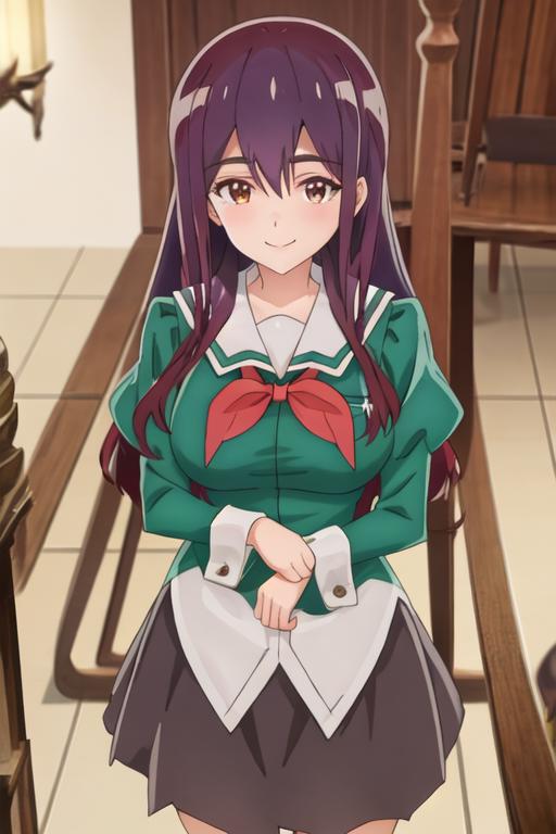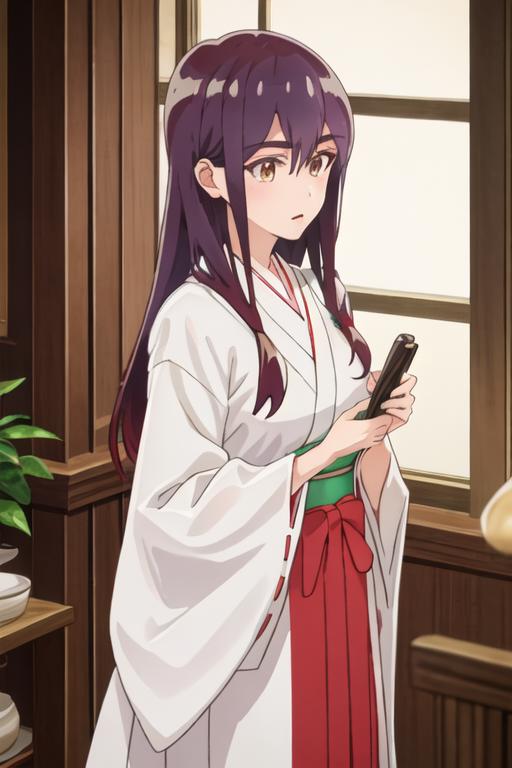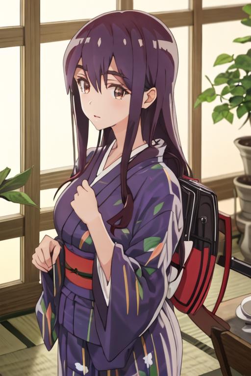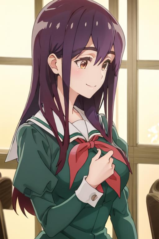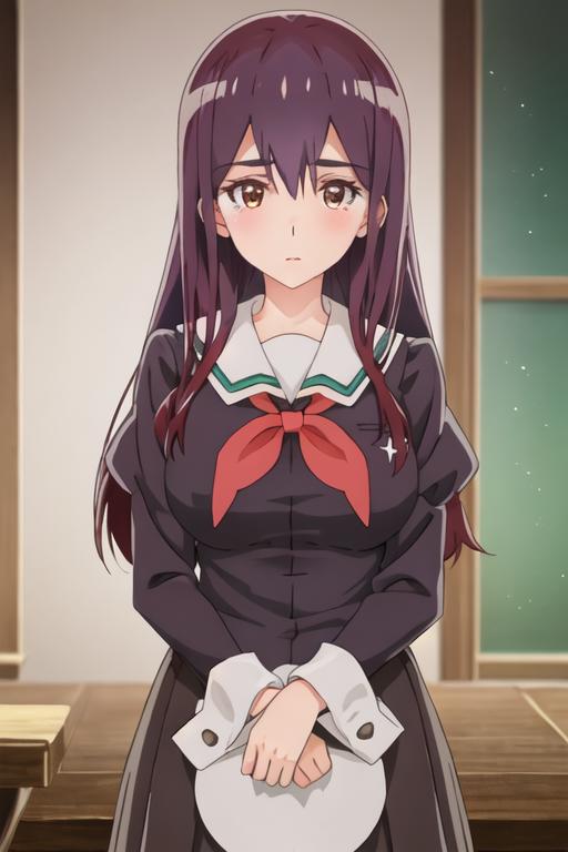 The trigger word is yano_mitsuki_watashinoyuriwaoshigotodesu, and the recommended tags are best quality, masterpiece, highres, solo, {yano_mitsuki_watashinoyuriwaoshigotodesu:1.15}, long_hair, purple_hair, brown_eyes, hair_between_eyes.