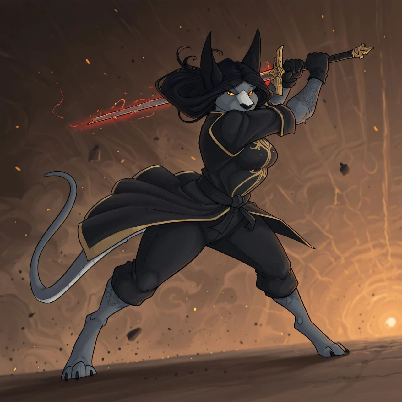 alicia_fenris49 ,drag0n_fenris49,,humanoid, furry,colored skin, black hair, grey skin, animal ears, long hair, digitigrade, tail, black nose, countershade torso, black ears,
