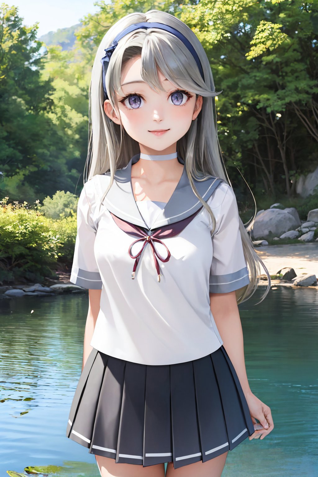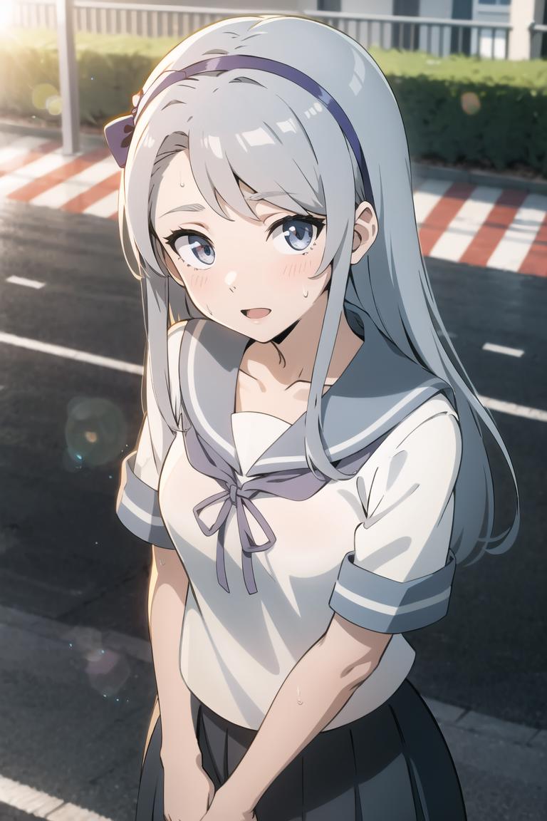 Default Outfit: hairband, school uniform, serafuku, grey skirt