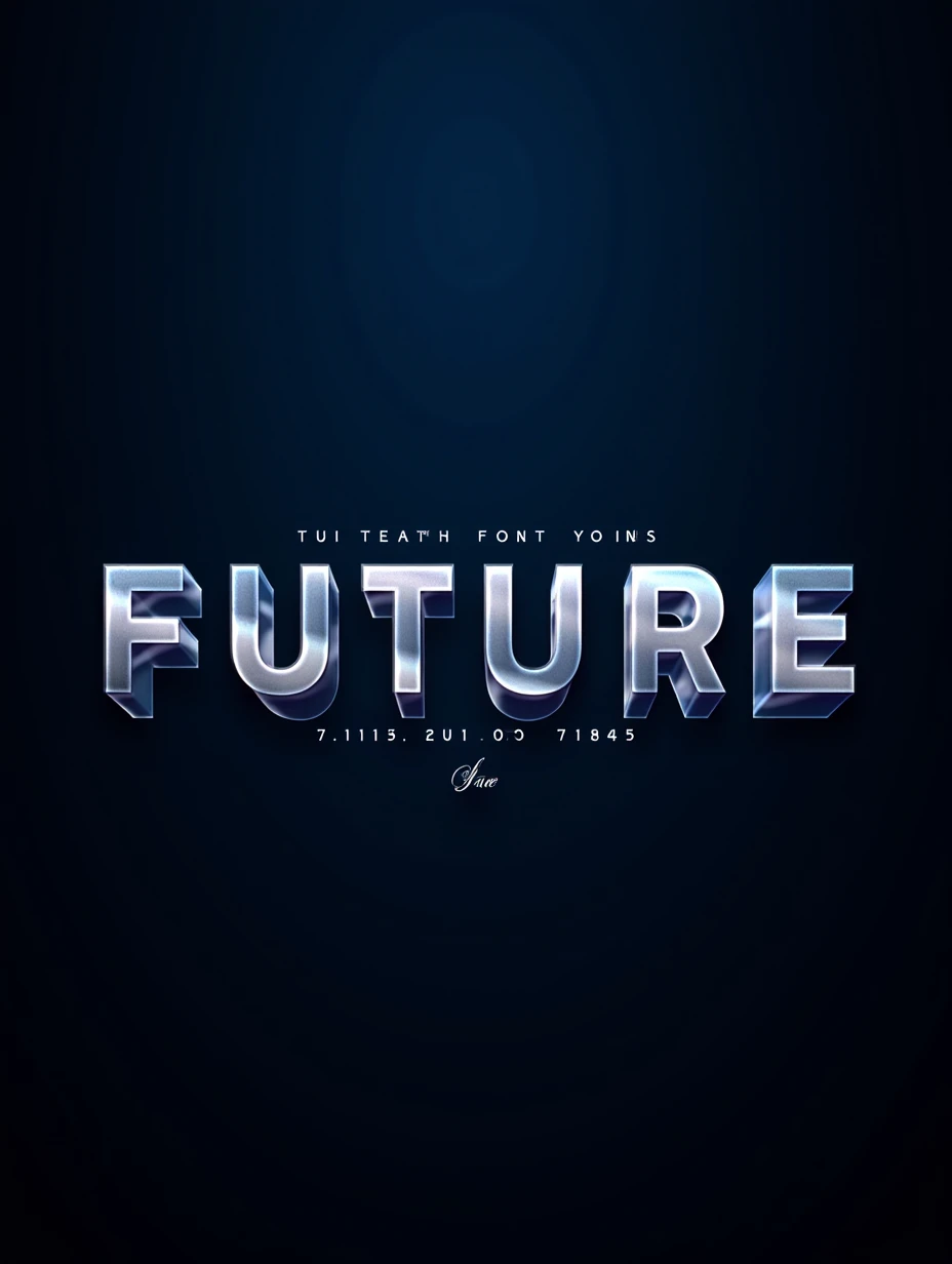 Sleek silver letters spelling "FUTURE" with circuit board patterns and digital numbers, on a dark metallic blue background.