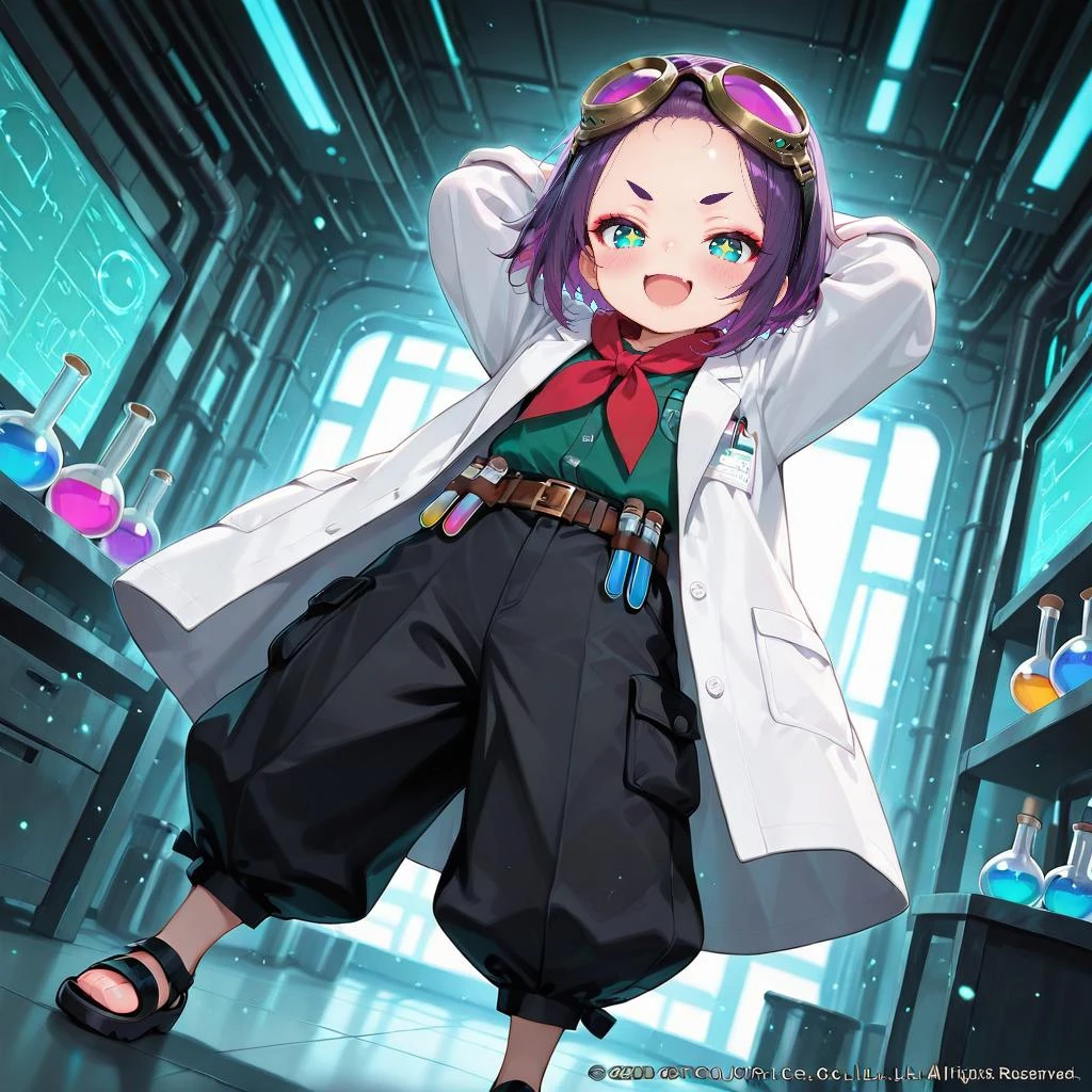 Lili, purple hair, thick eyebrows, v-shaped eyebrows, multicolored hair, two-tone hair, blue eyes, +_+, aqua eyes