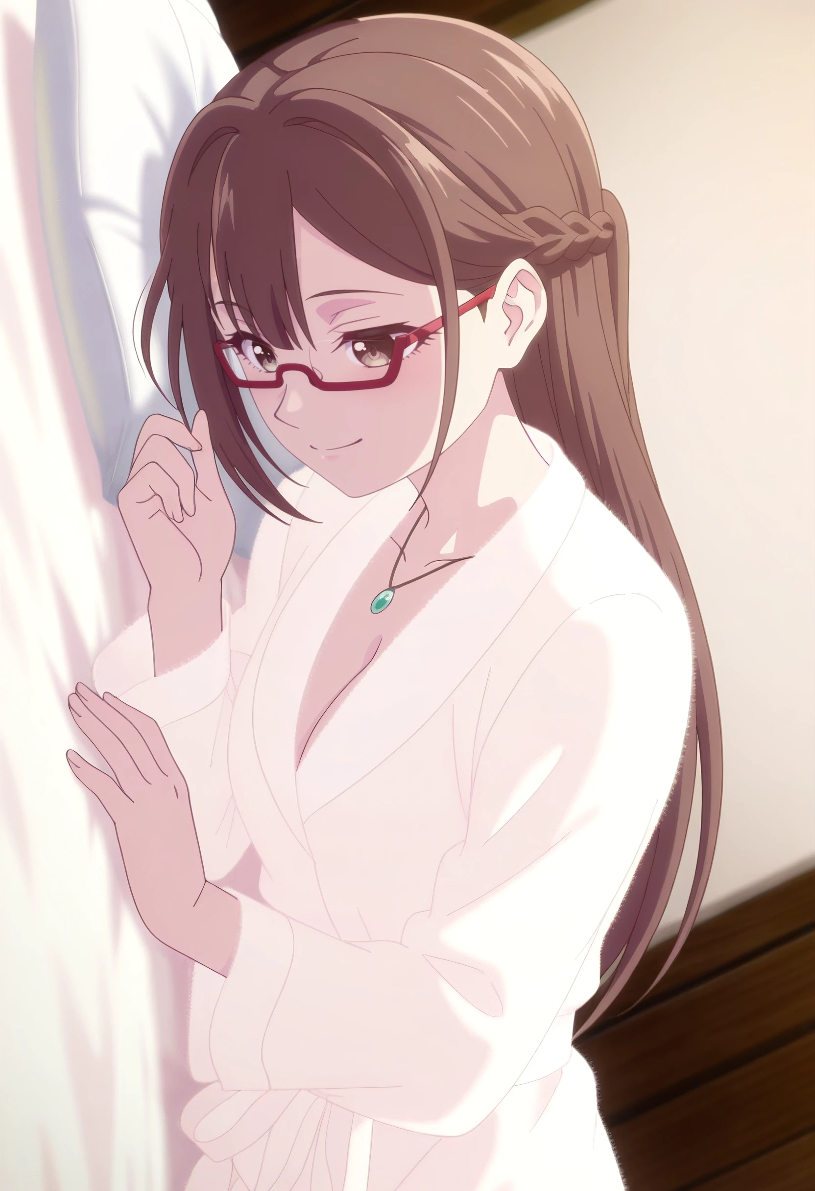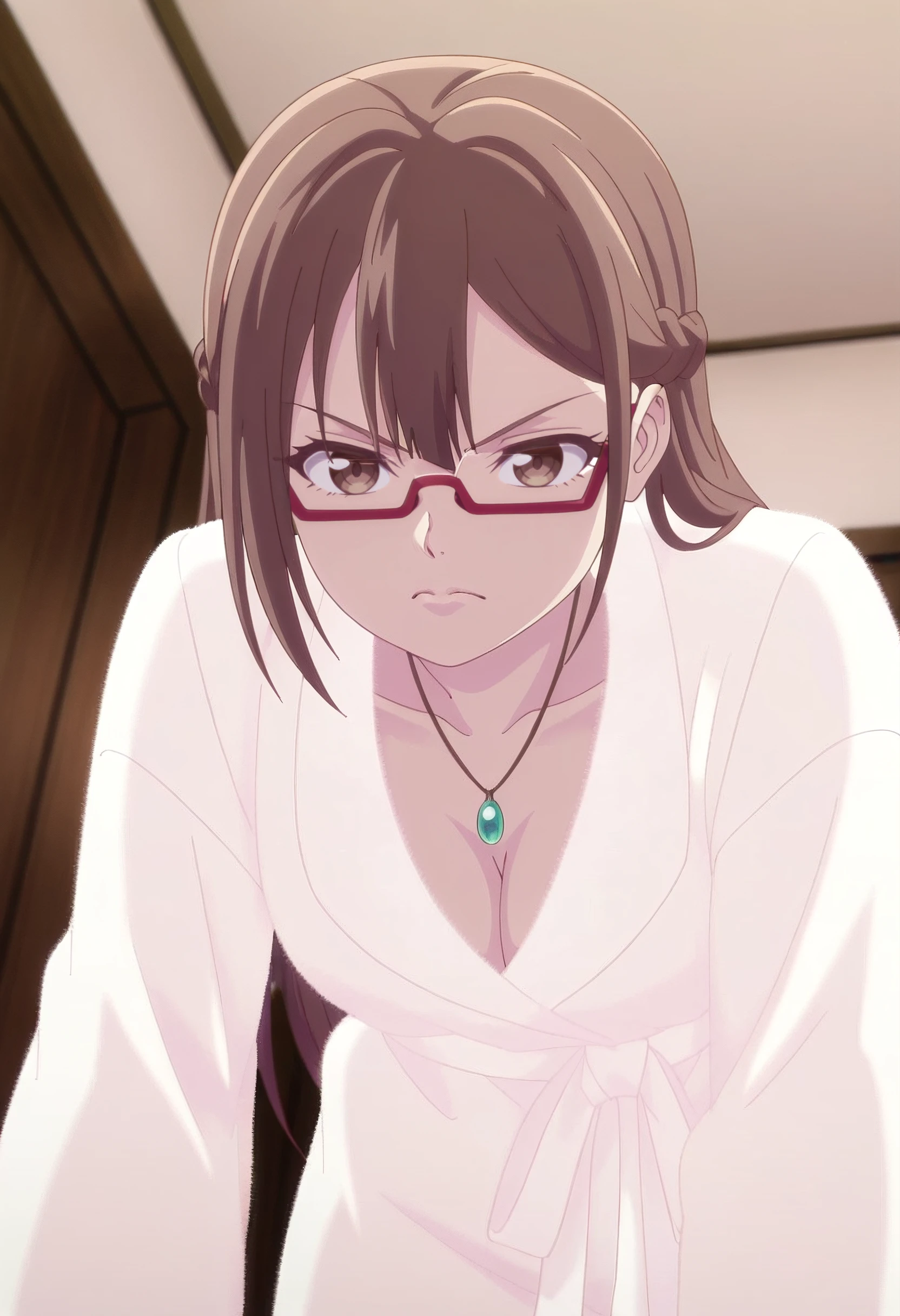 MirandaRobe, jewelry, necklace, white robe, bathrobe, cleavage, long sleeves,
