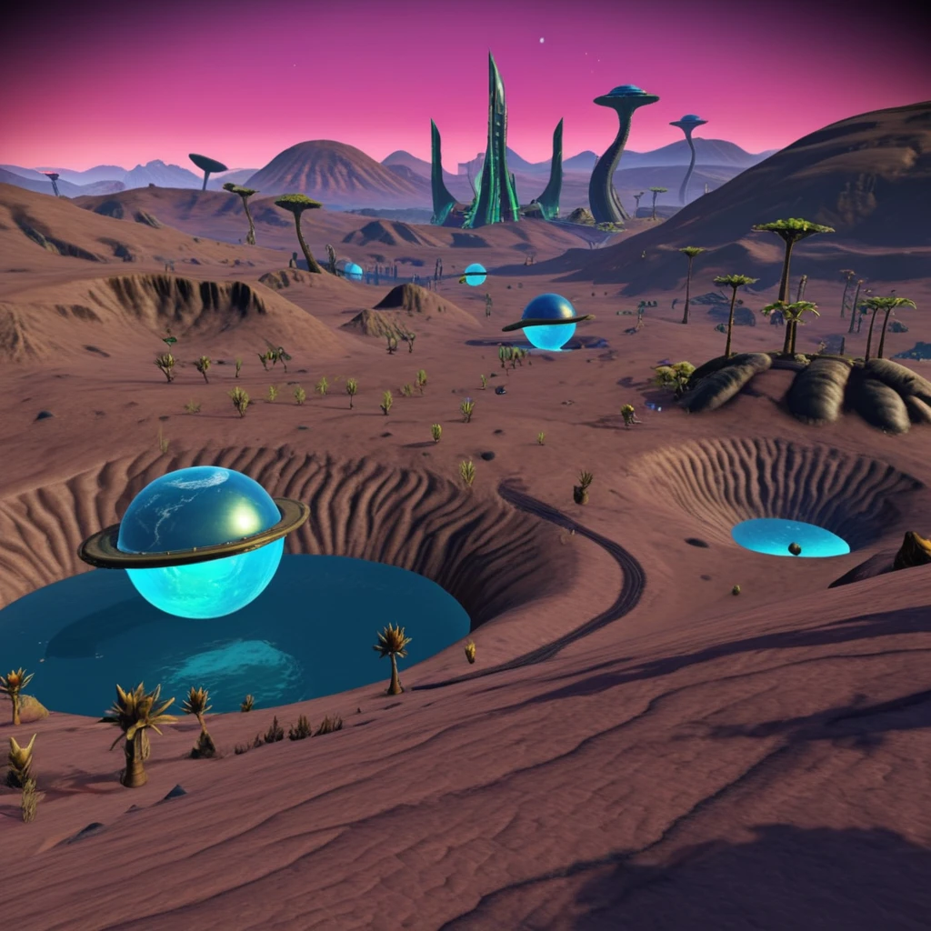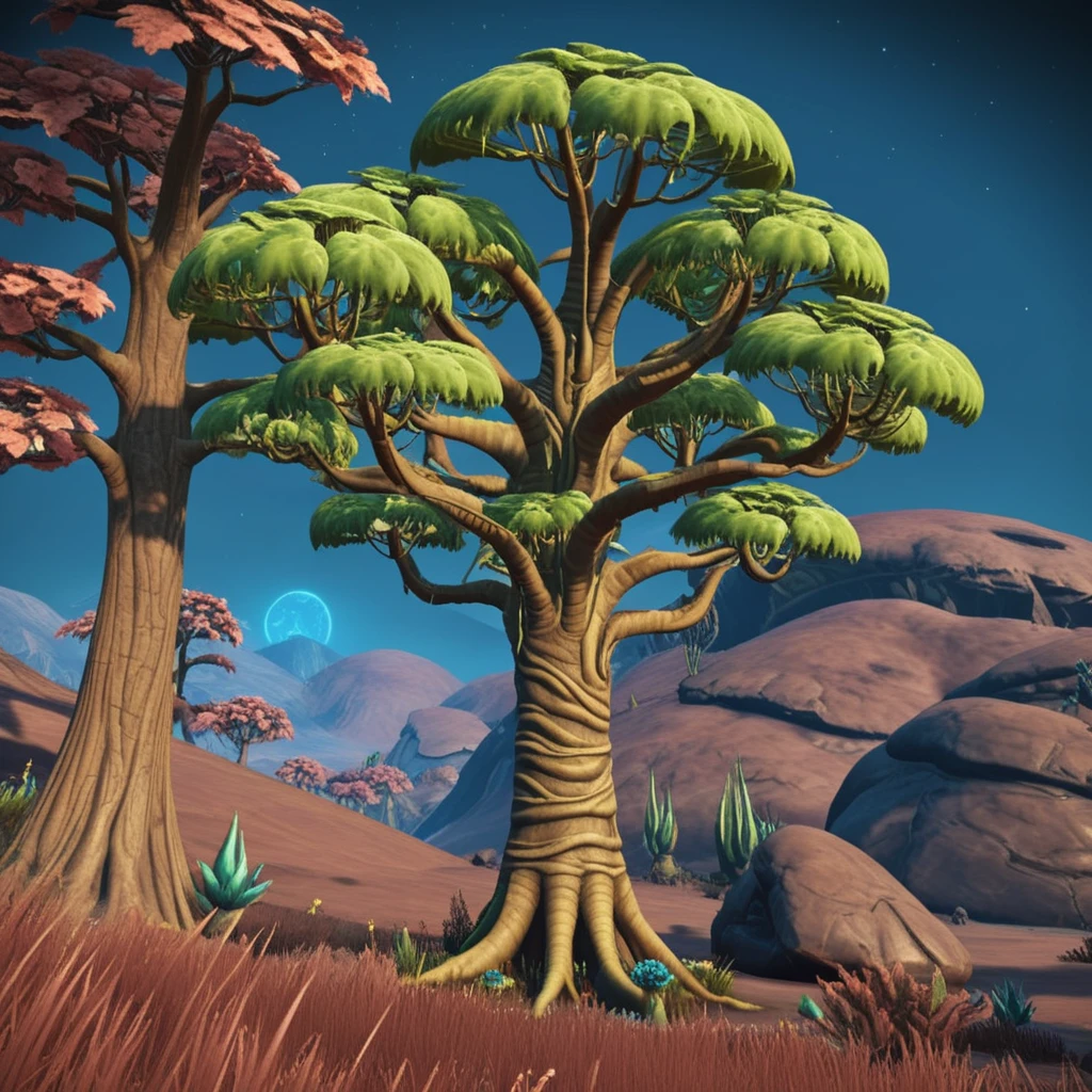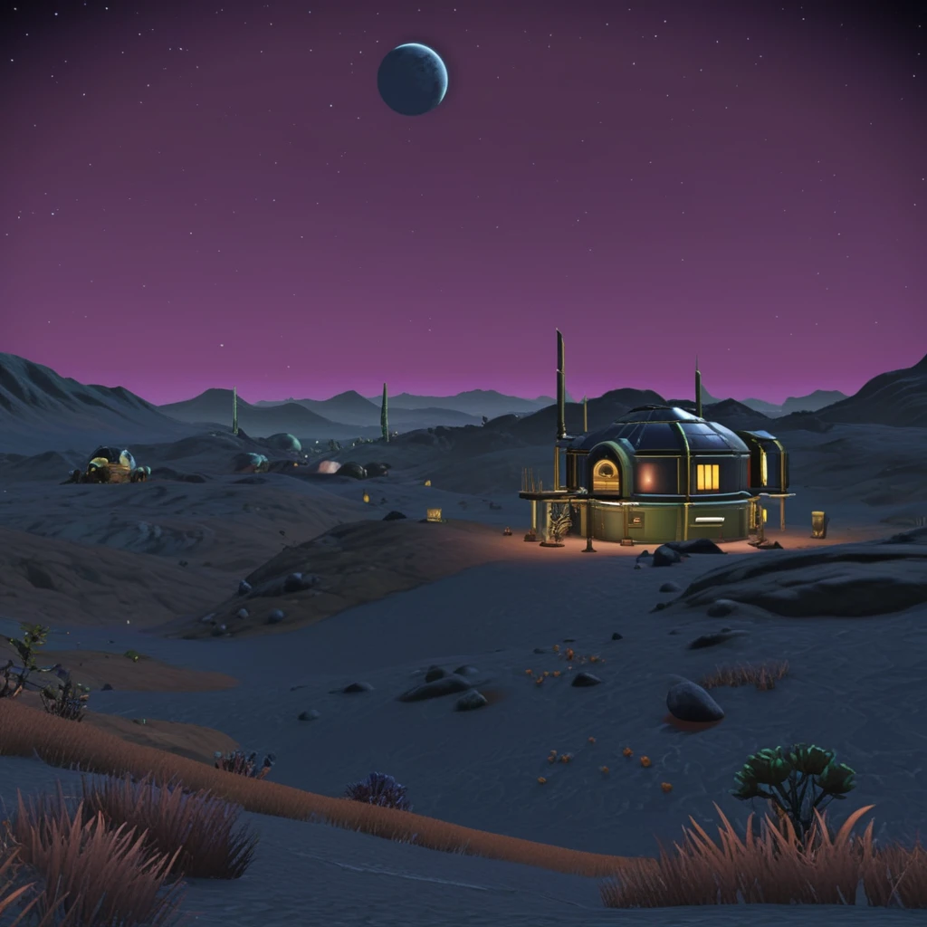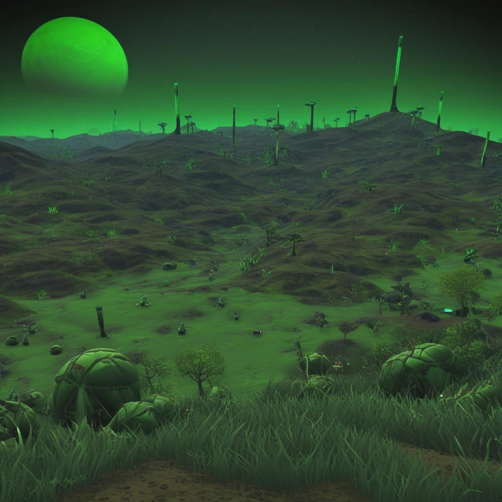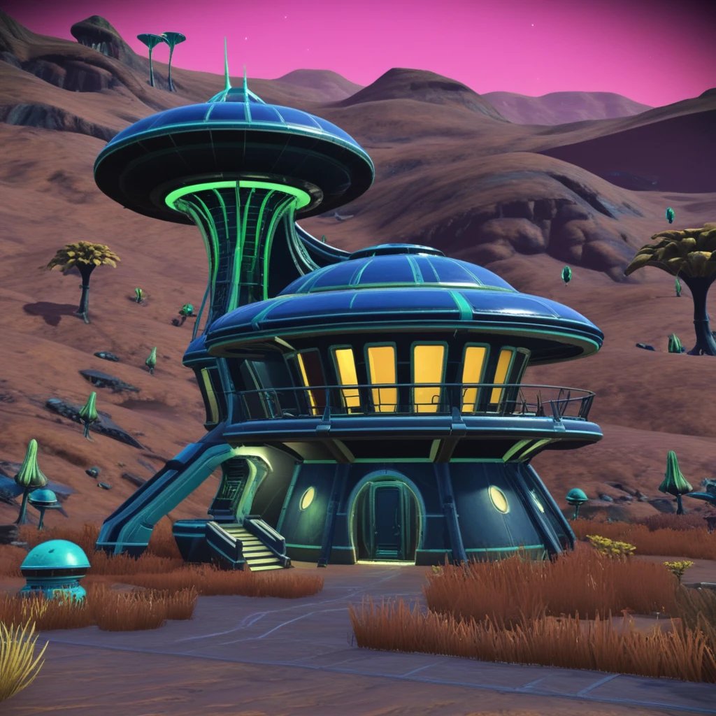 Taken from screenshots, this gives images the feel of the game No Man's Sky.While NMS_Style is the primary trigger, you can also use words such as alien, insectile, quadruped, monolith, spaceship.