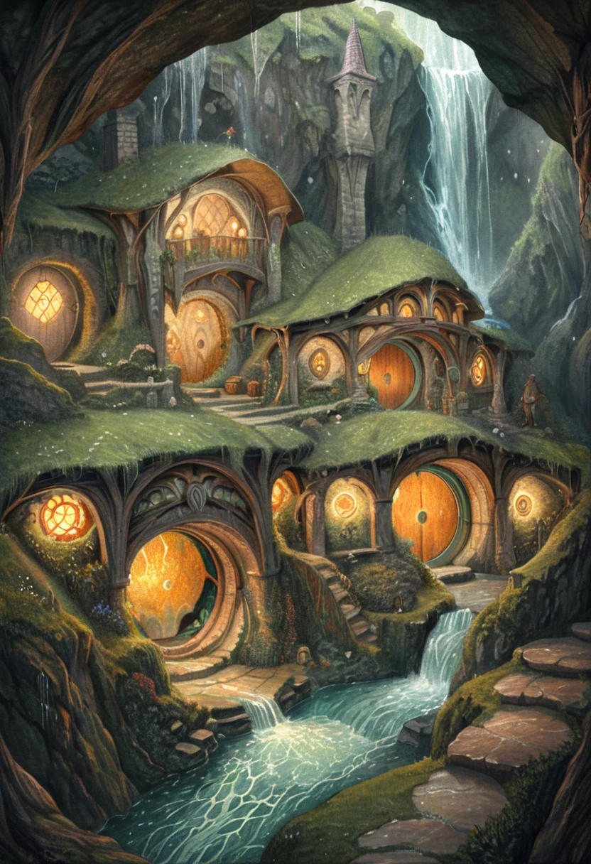 This lora was created for a friend on civitai, the style is tolkien esque, very whimsical, a bit of pointillism, faded colors