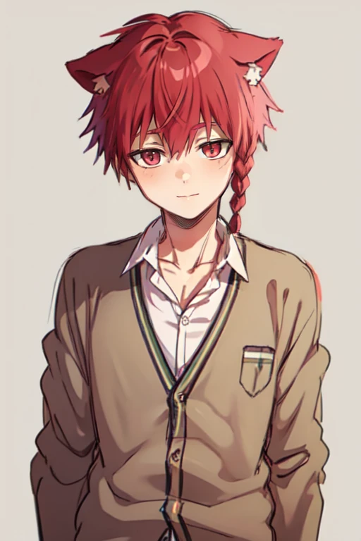 ranze kurona,braid,single braid,red hair,red eyes,short hair