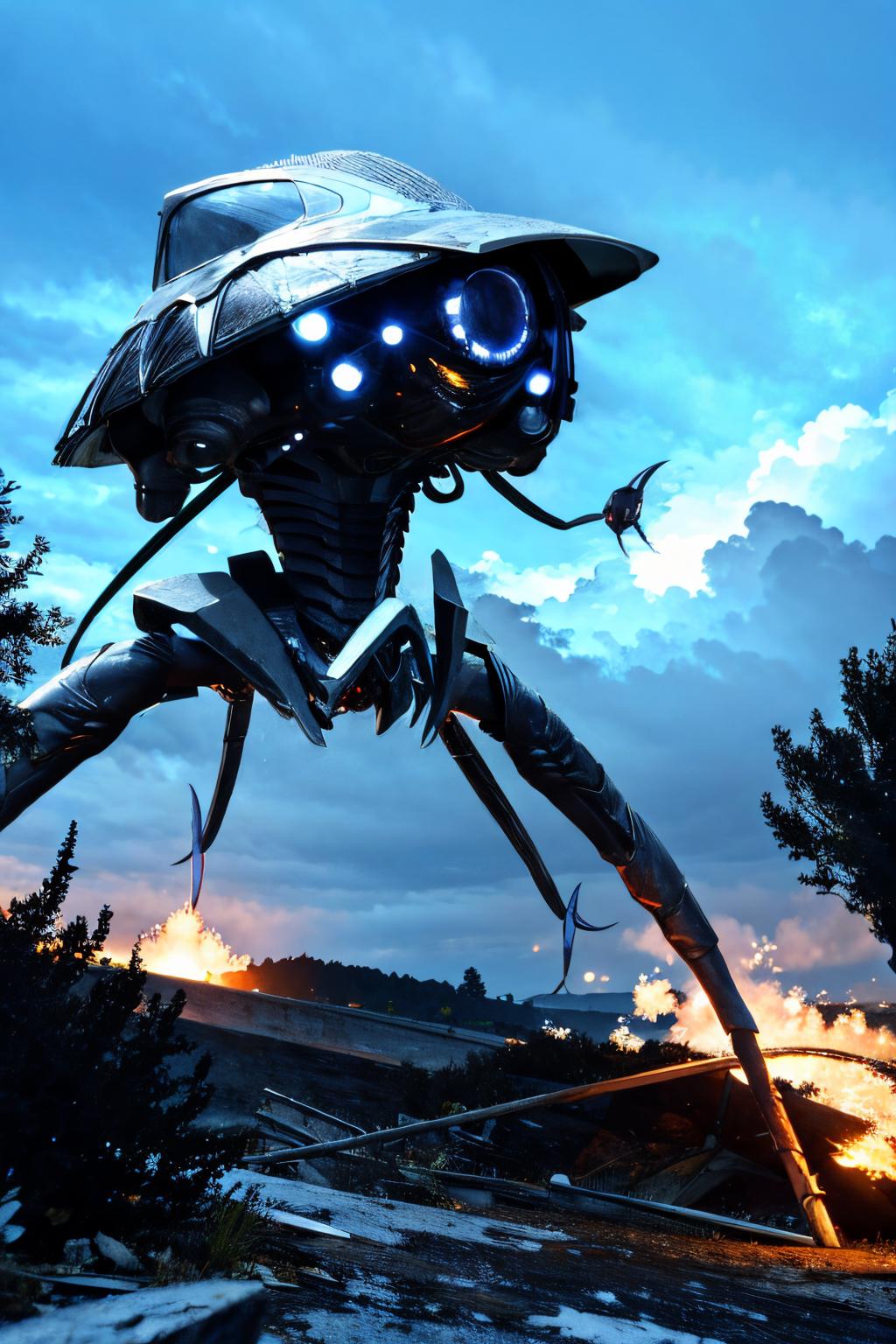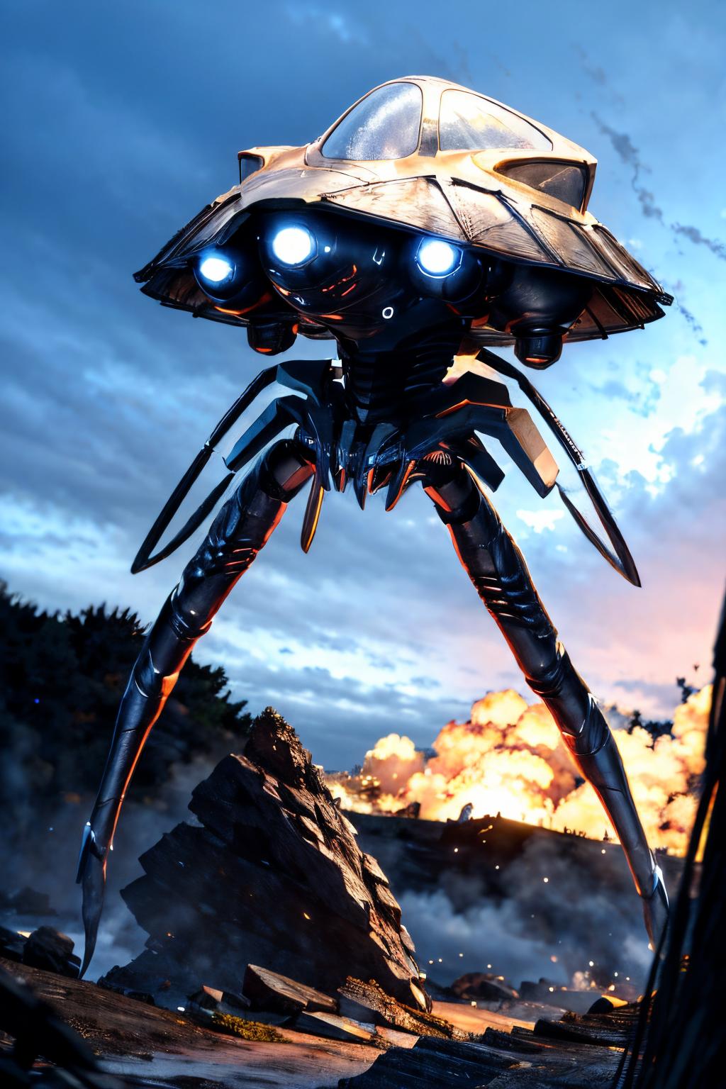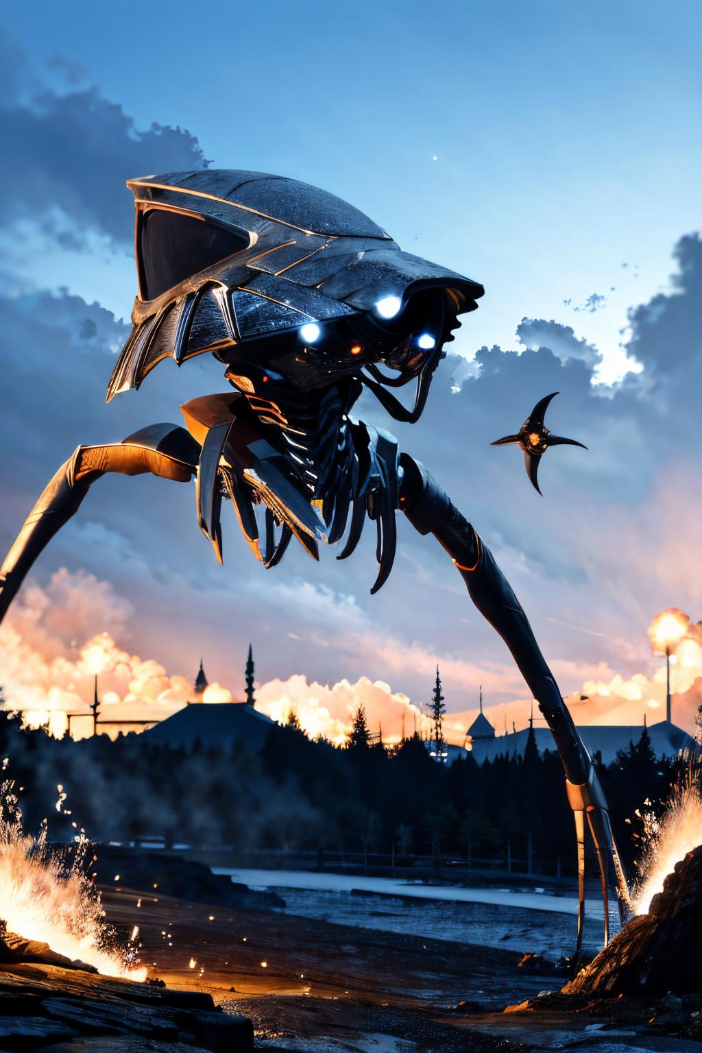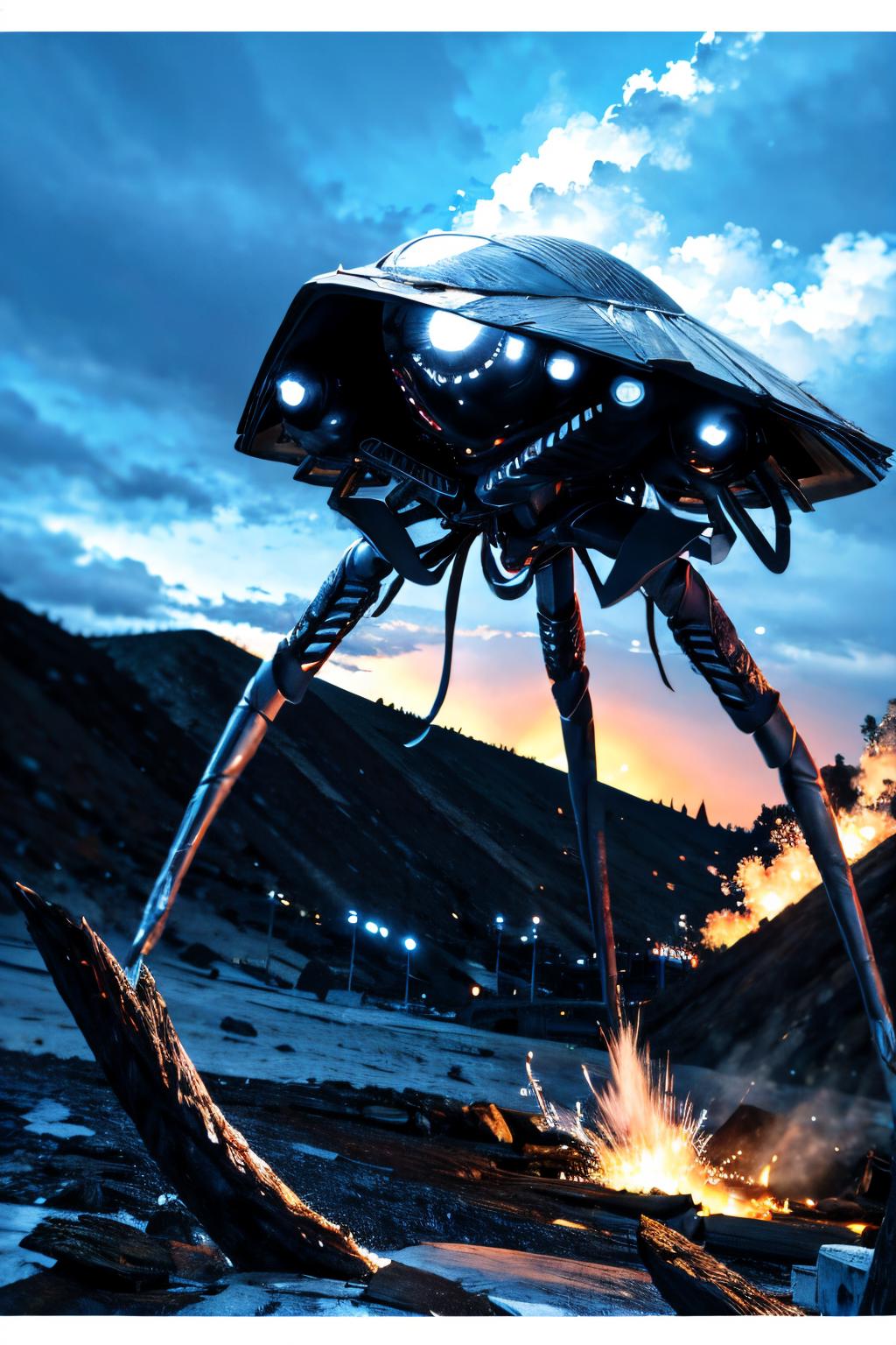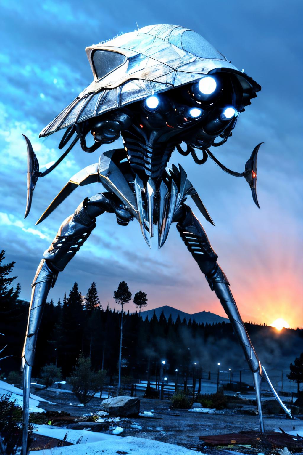Use "EdobTWOTWTripod" "a giant alien creature", "claws", on prompt
