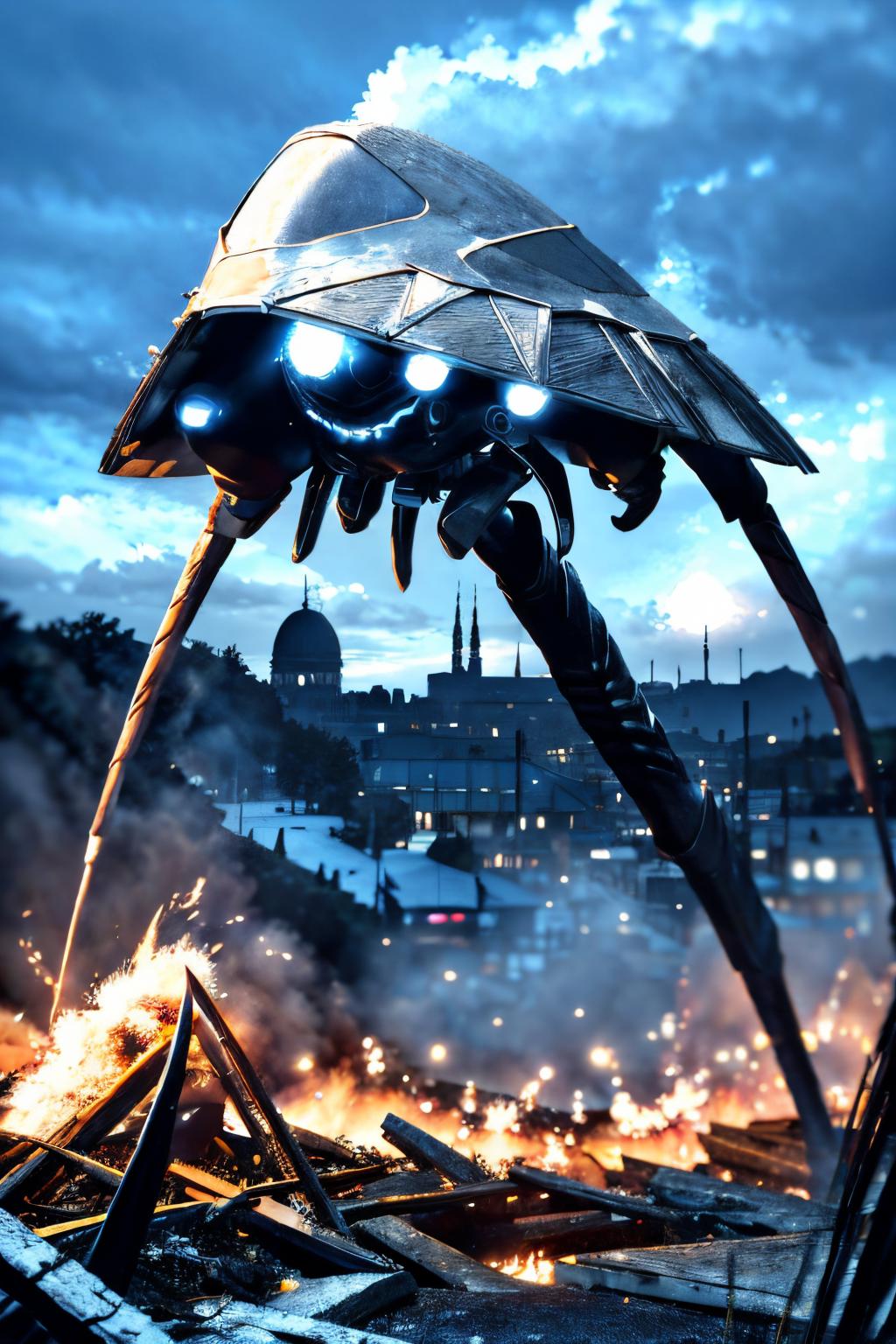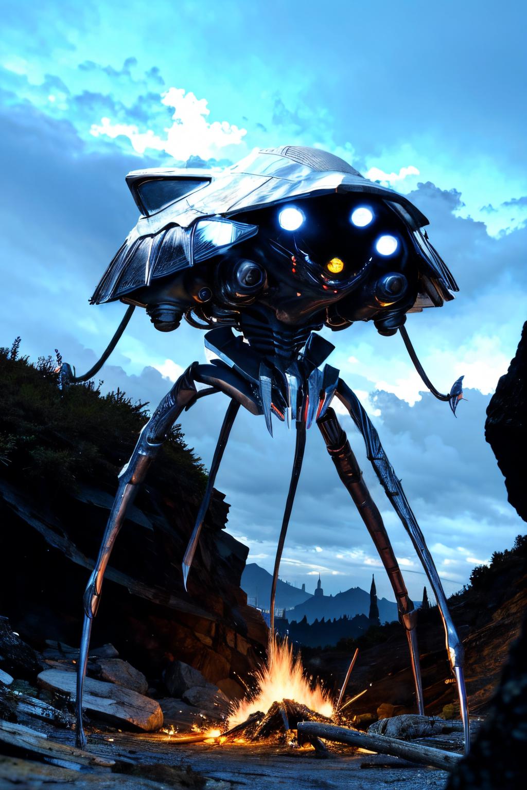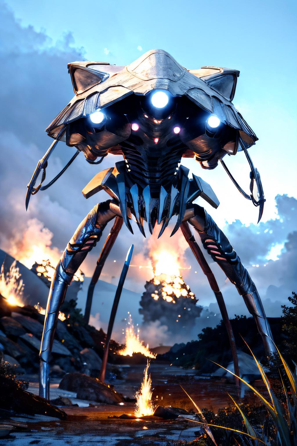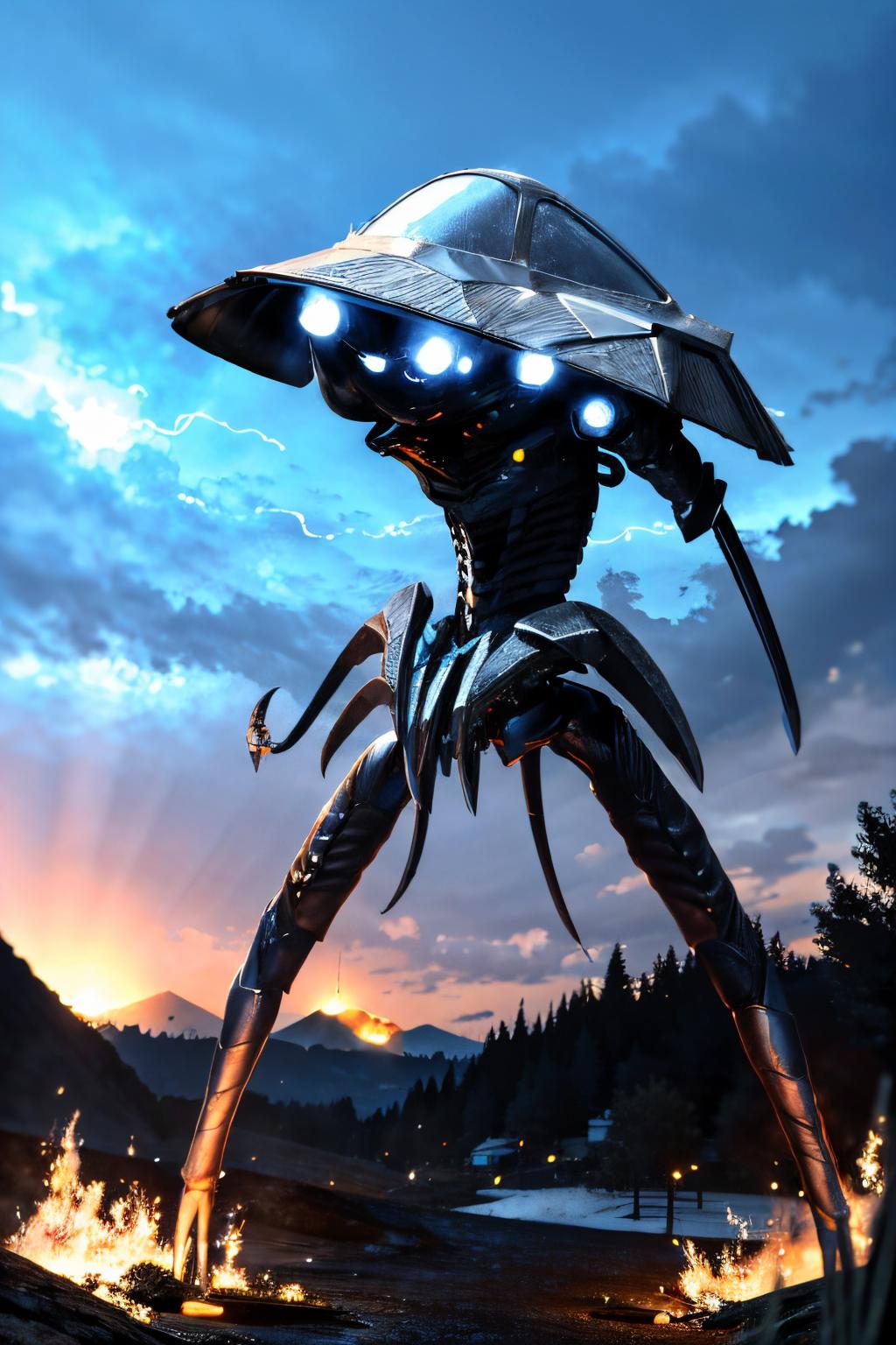Use "EdobTWOTWTripod" "a giant alien creature", "claws", on prompt