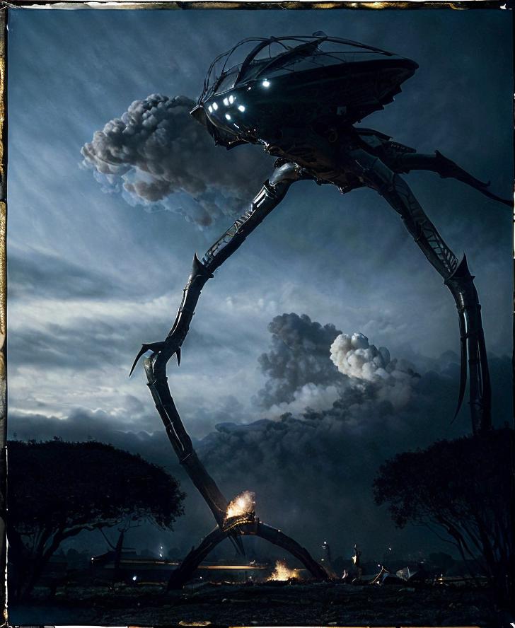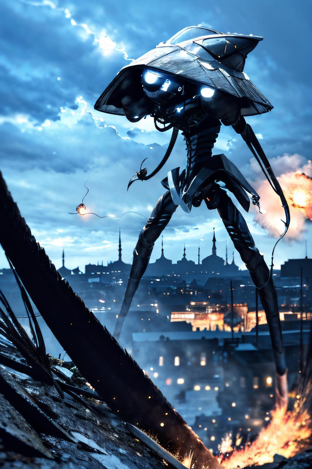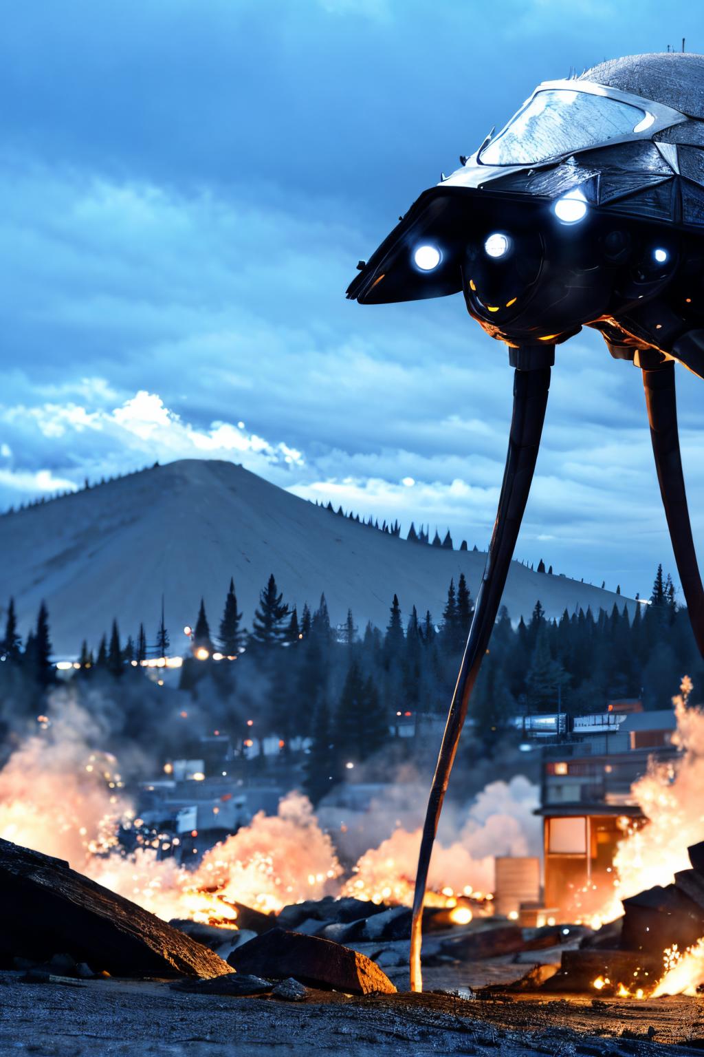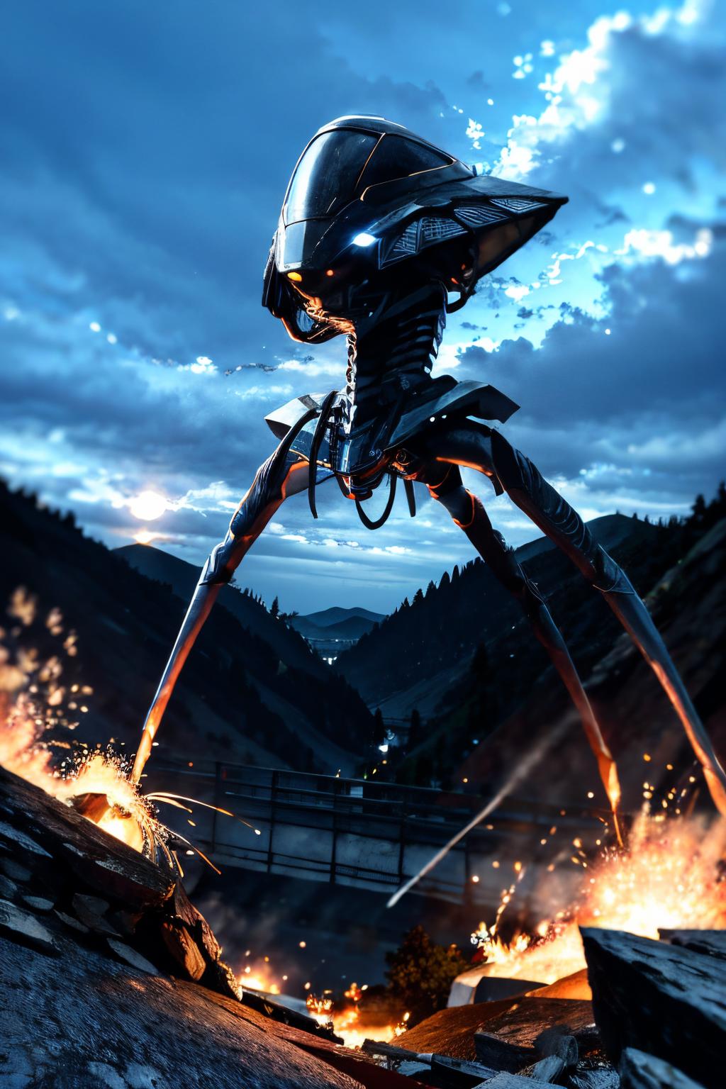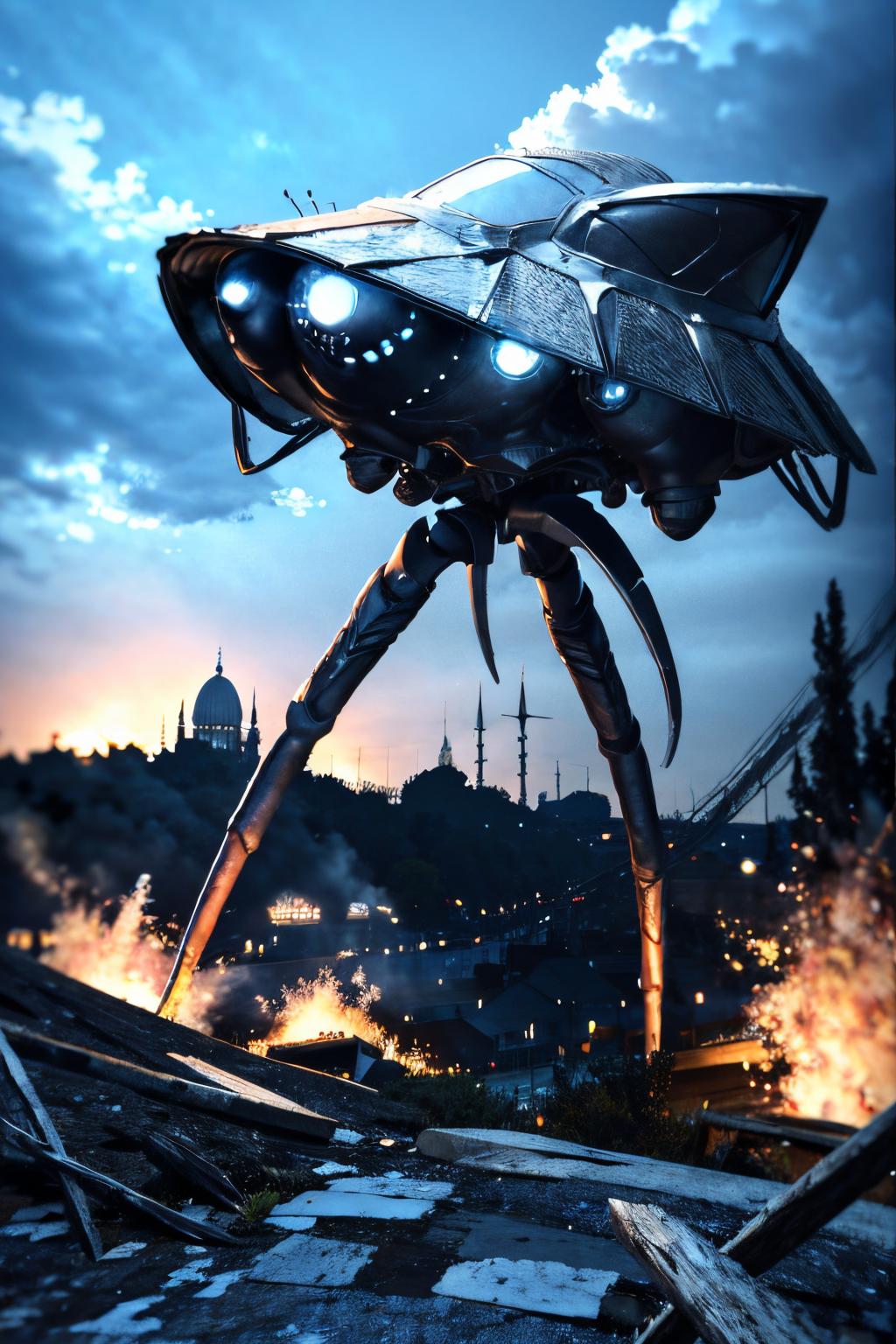 Use "EdobTWOTWTripod" "a giant alien creature", "claws", on prompt