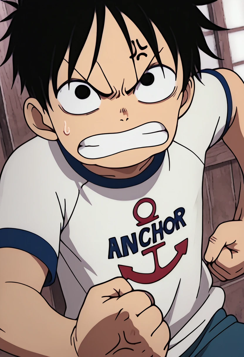 A character LoRa for young Luffy from One Piece. In the Foosha Village Flashback of Episode 4 "Luffy's Past! The Red-Haired Shanks Appears" we learn how young Luffy became friends with Shanks and his pirate crew. Trained on screencaps of said flashback episode. I tried to bake in the "anchor-shirt" Luffy is wearing in that flashback and given the images I had it came out quite good. Can also be used to generate a different character wearing this shirt, but accuracy will depend on the checkpoint you use.