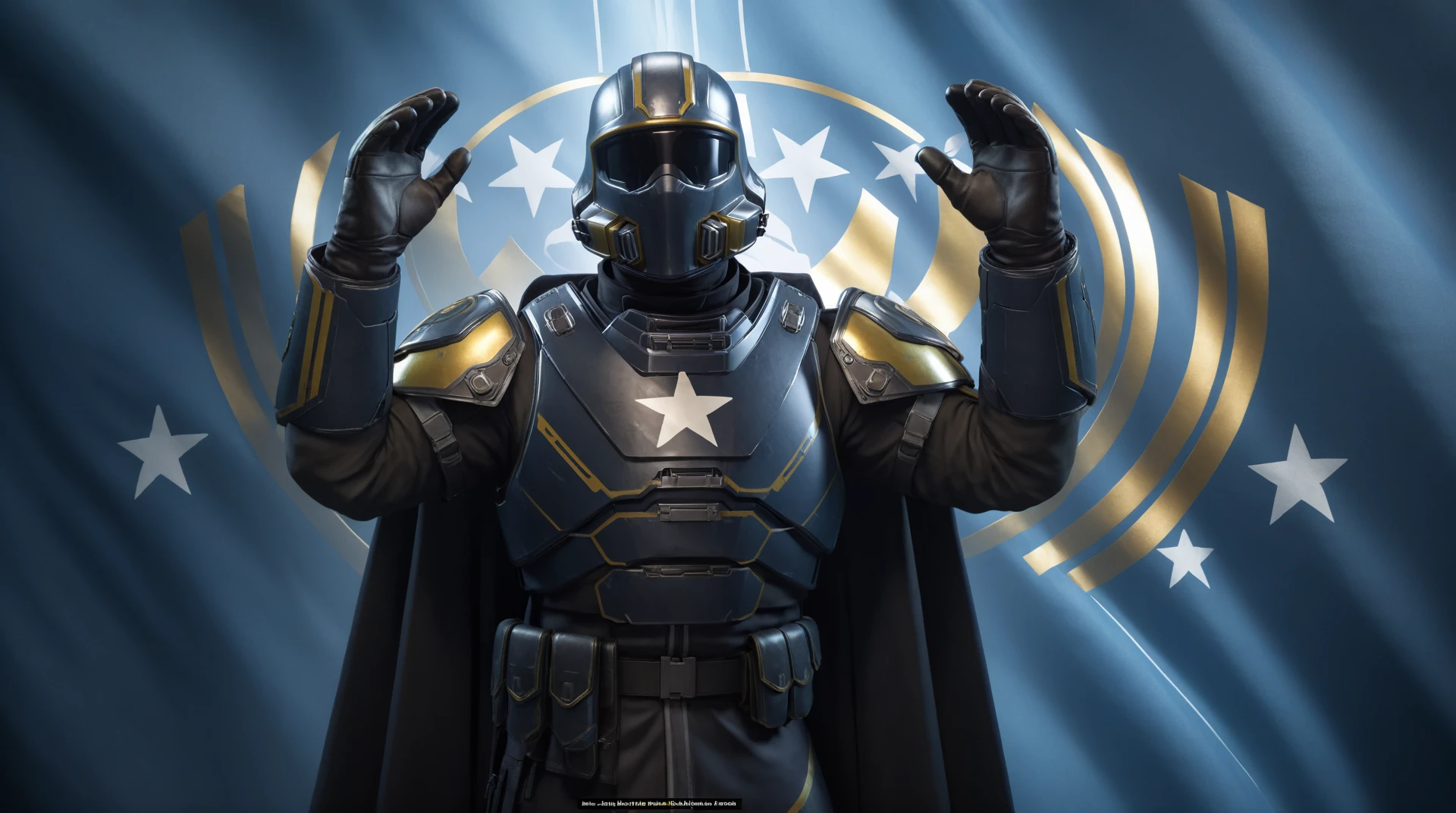 hll style, helldiver outfit with helmet, fist salute