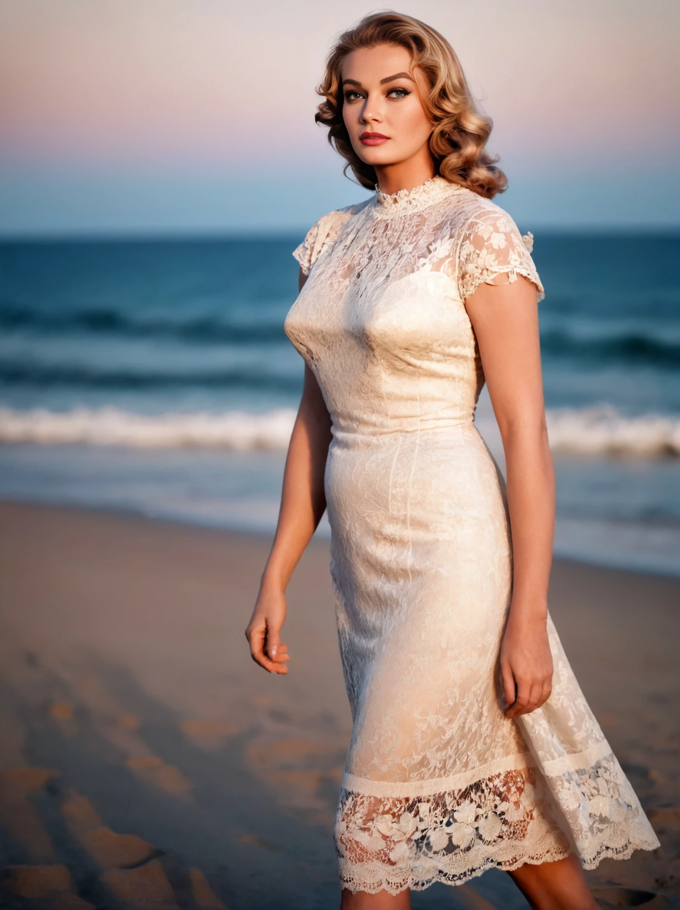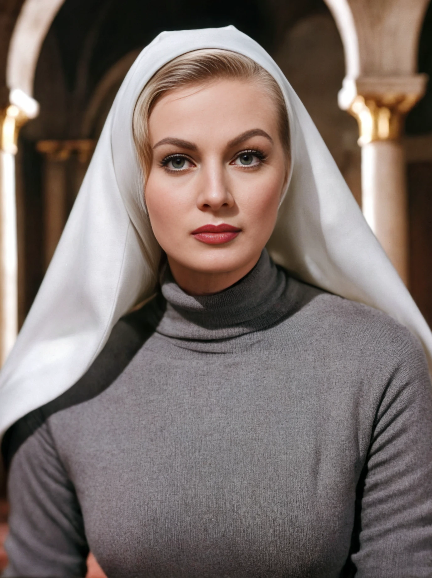 This is the late Anita Ekberg, a Swedish actress who participated in many films in the 50's and 60's. A really beautiful blonde woman with an iconic scene, showering in Fontana di Trevi in Rome in the Federico Fellini's film La Dolce Vita.