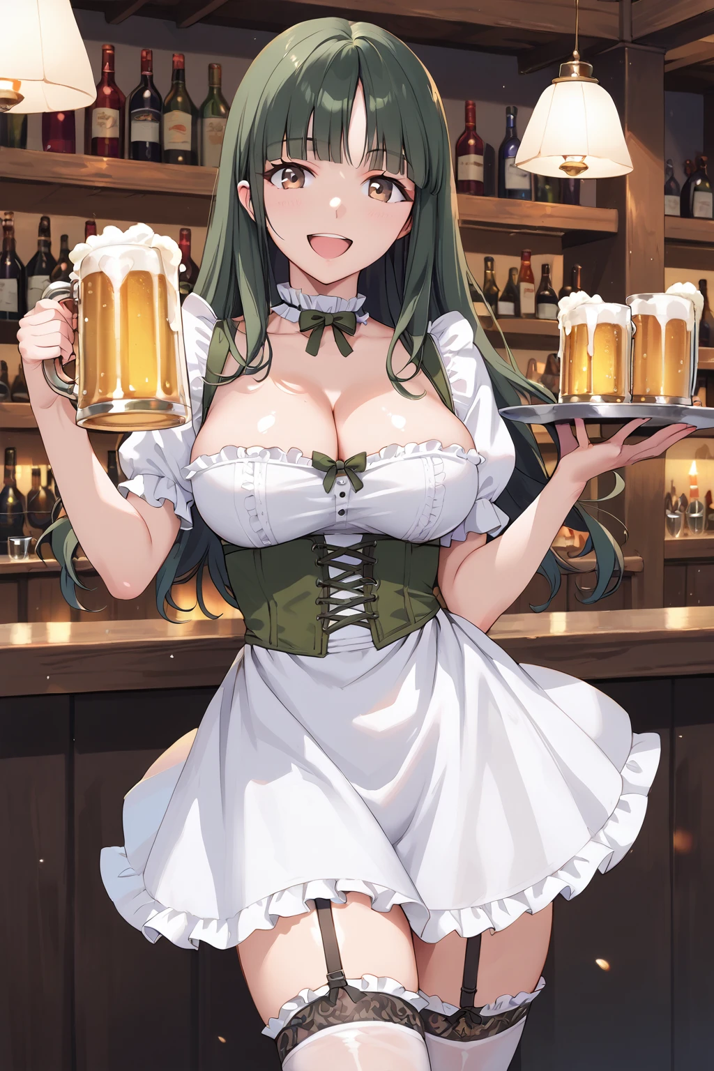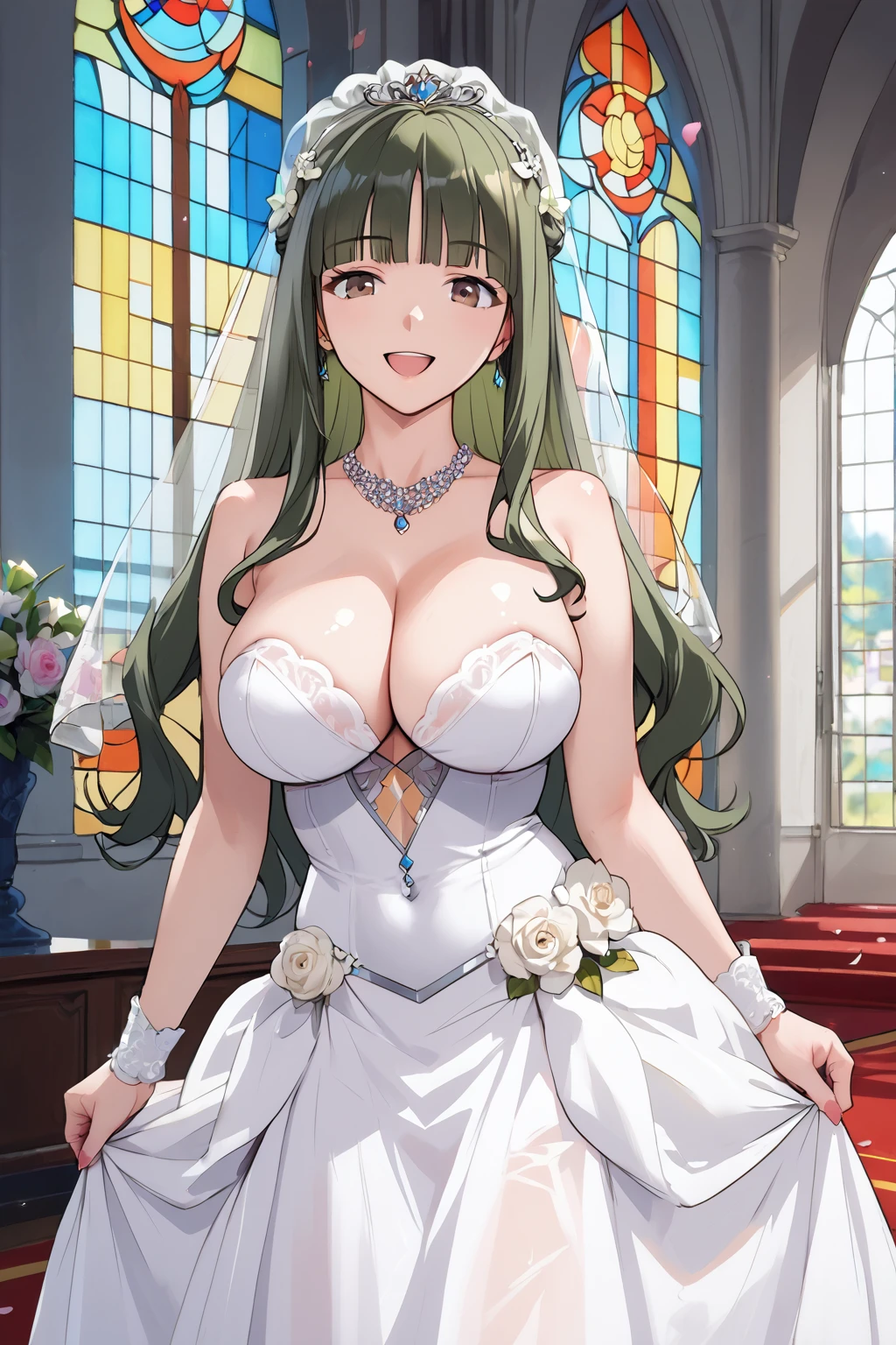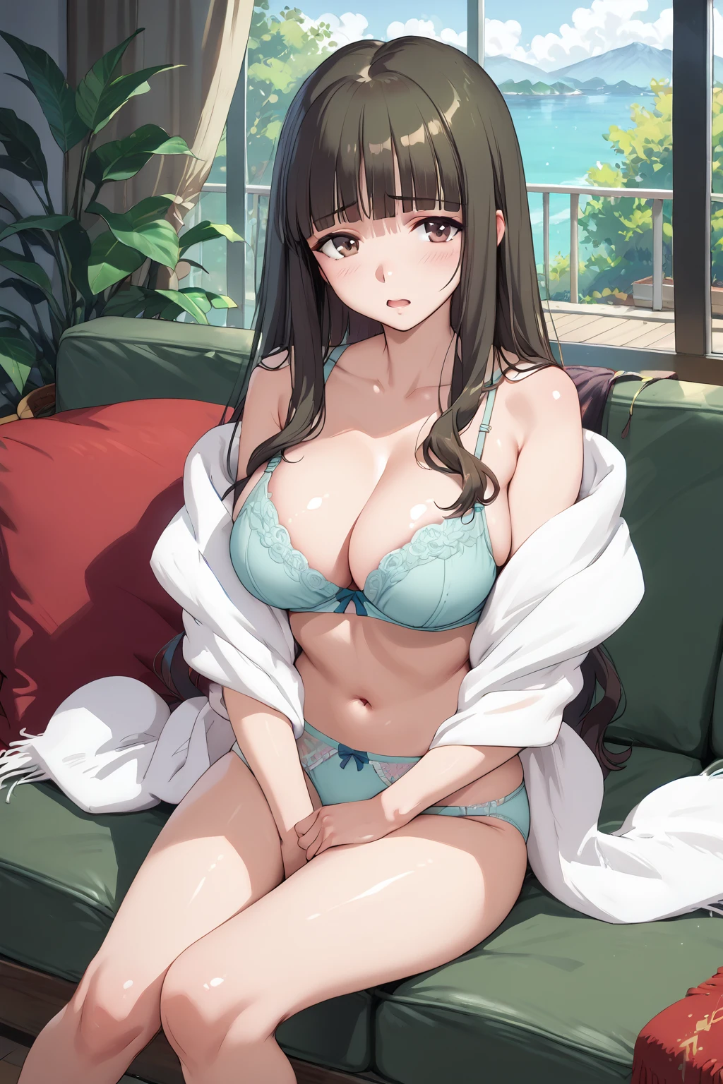 tohsakaaoi, long hair, brown eyes, blunt bangs, dark green hair,