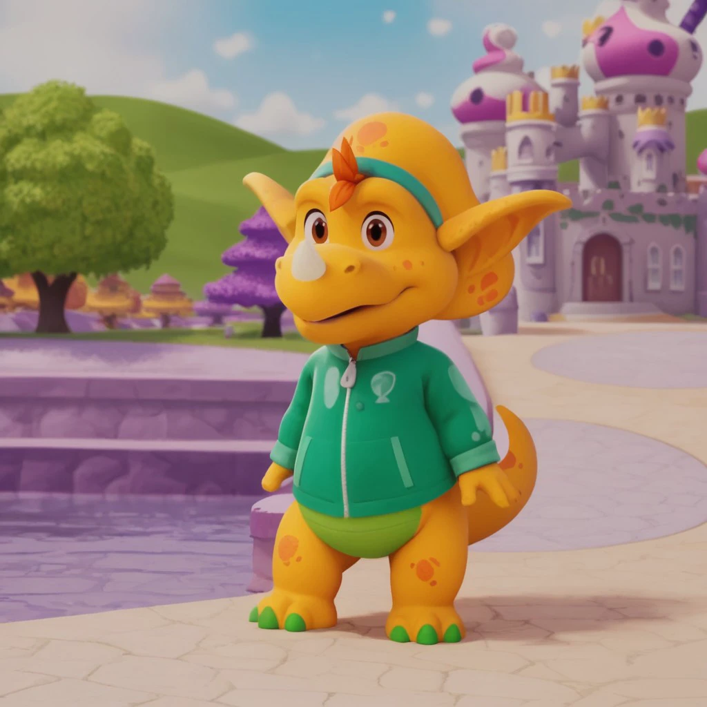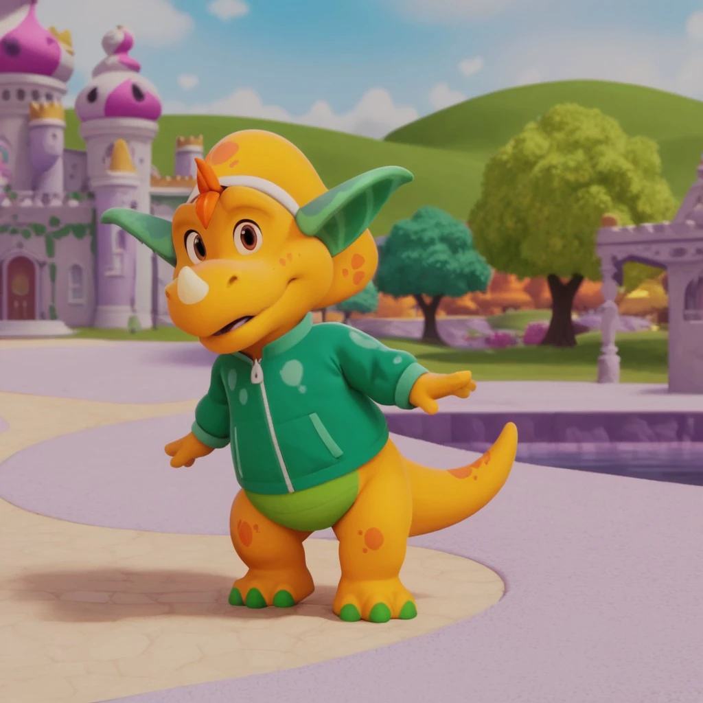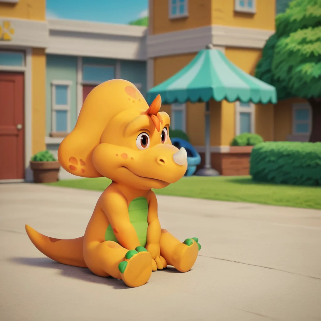 billybw, semi-anthro, male, dinosaur, yellow skin, orange hair tuft, brown eyes, nose horn