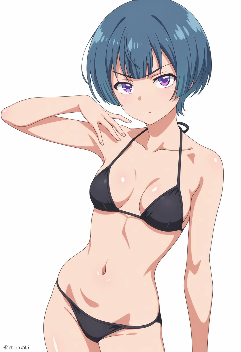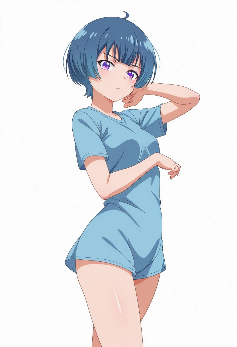 MioIbuki, Blue hair, short hair, Bangs, purple eyes, medium breasts