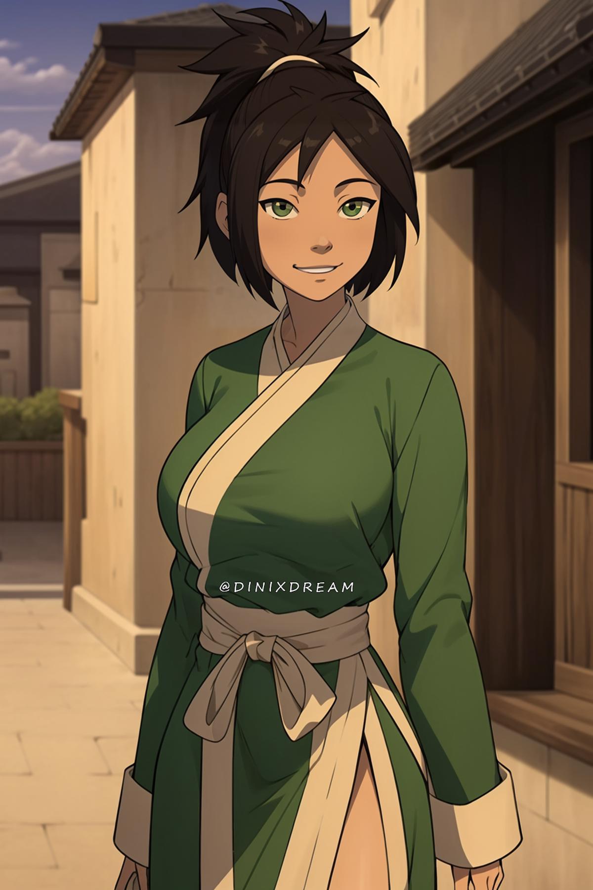 ✦ The main trigger words is 1girl, black_hair, green eyes, smile, green clothes, long_sleeves, ponytail, sash,