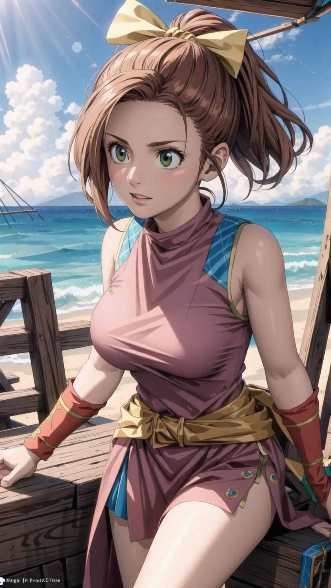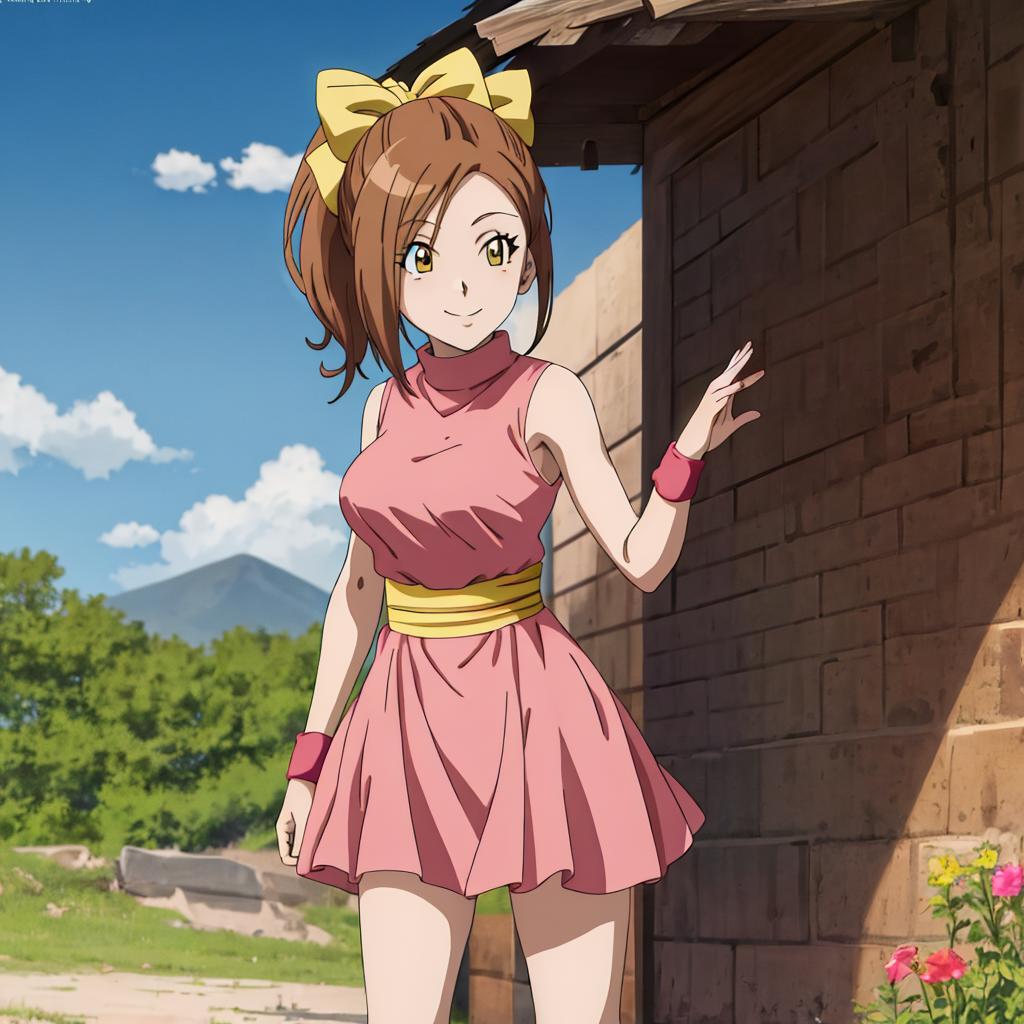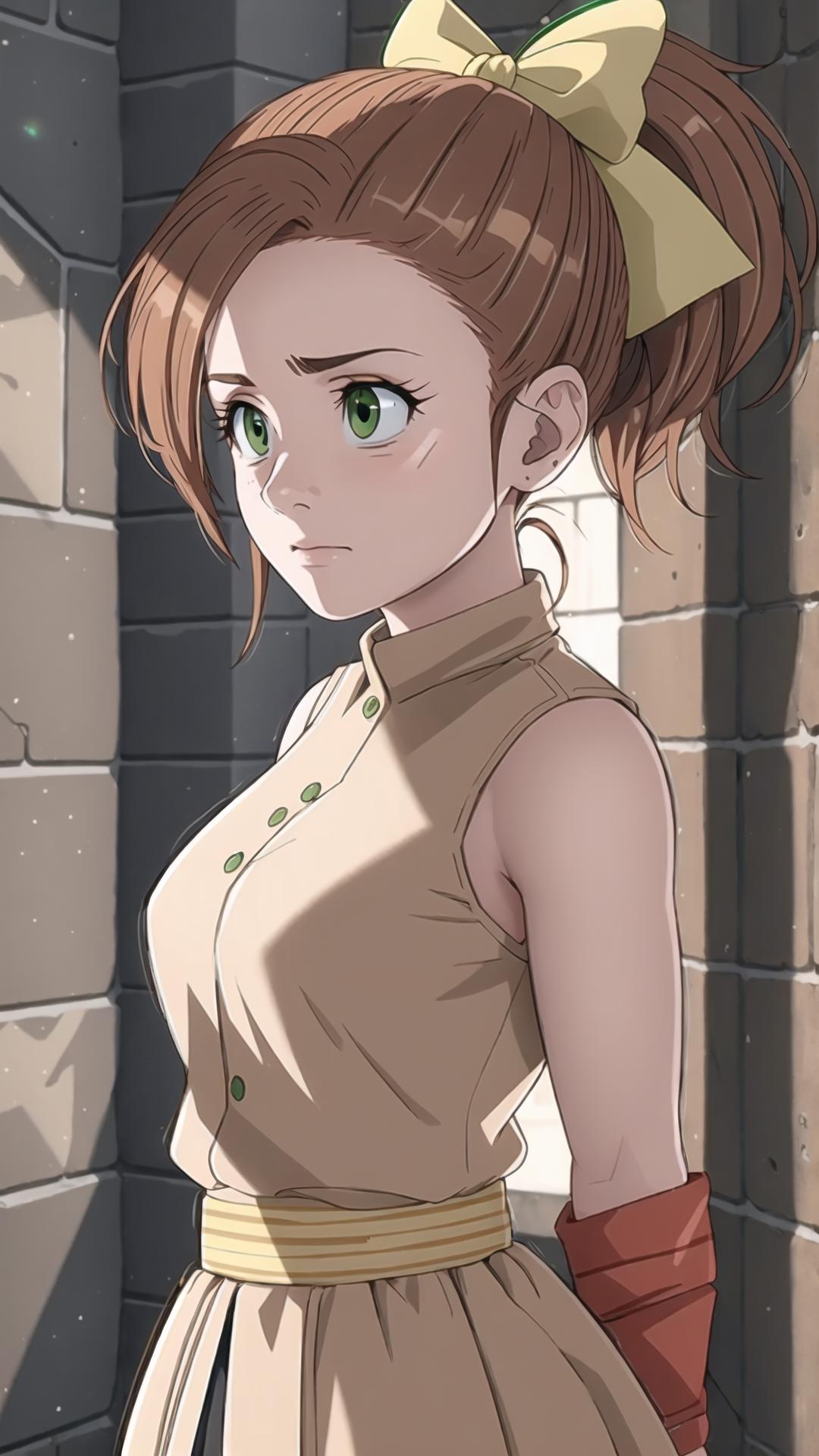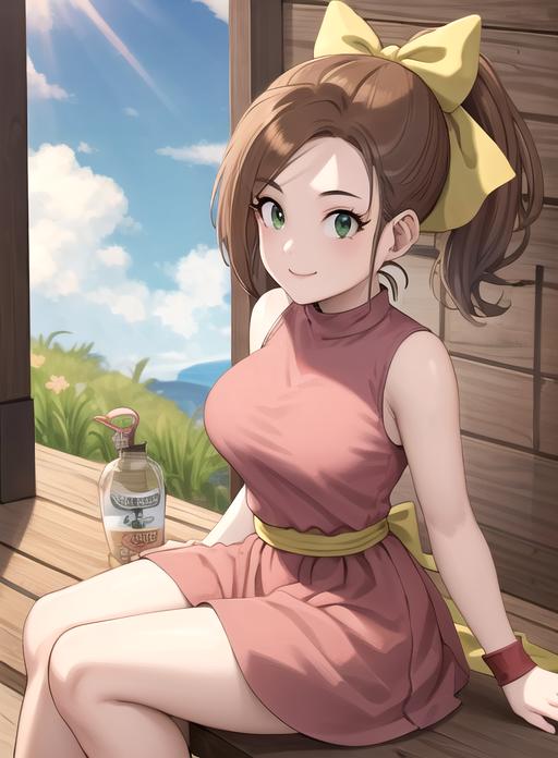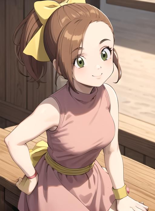 Tested at 0.7-1Trigger WordsKluke, brown hair, bow, green eyes, ponytail, hair bow, Add: pink dress, sleeveless,