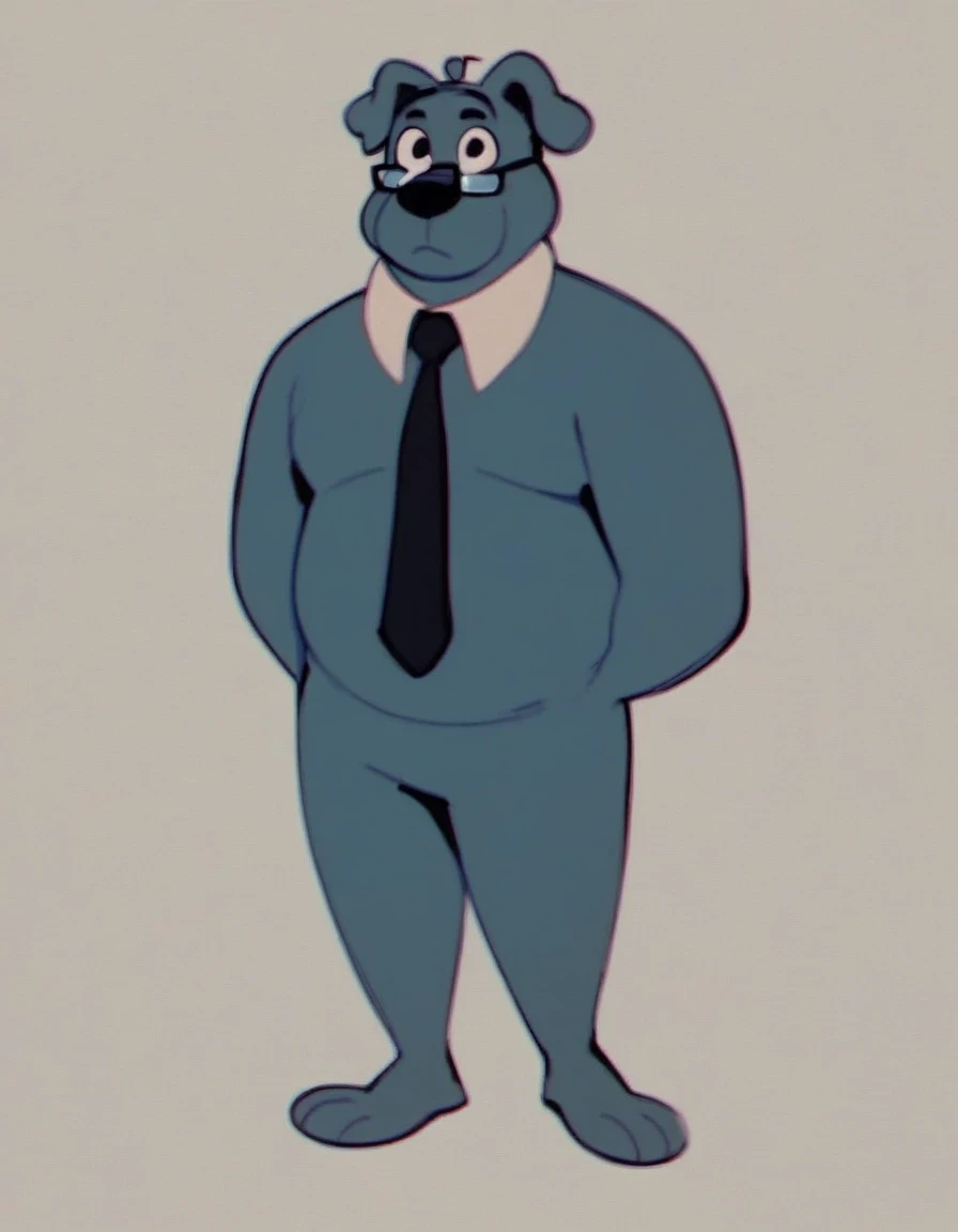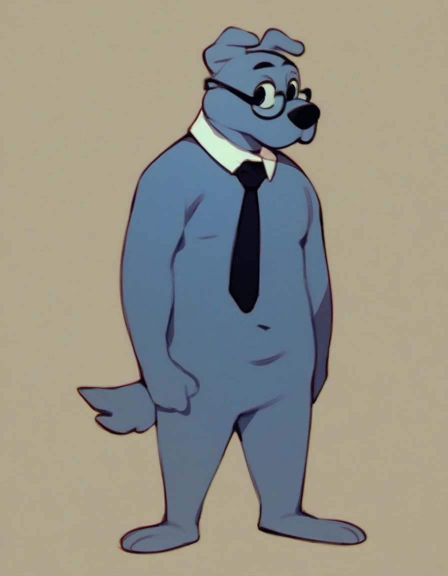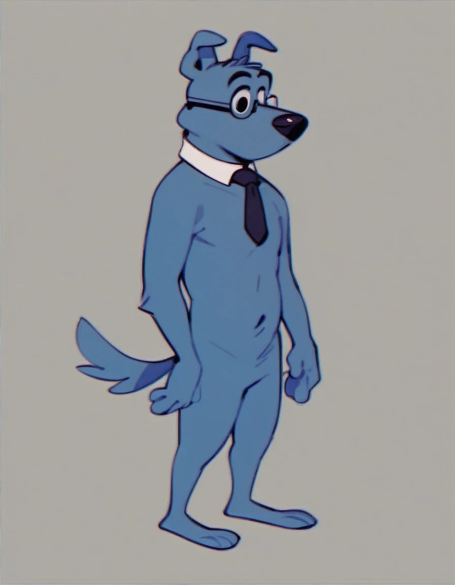 Kolin_Kelly, 1boy, no humans, black eyes, dog, glasses, light blue fur, dark blue necktie, white collar, naked, nude