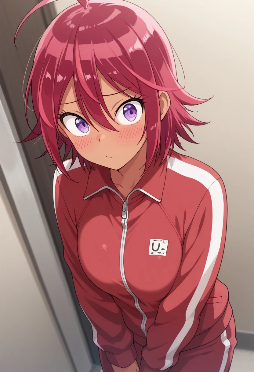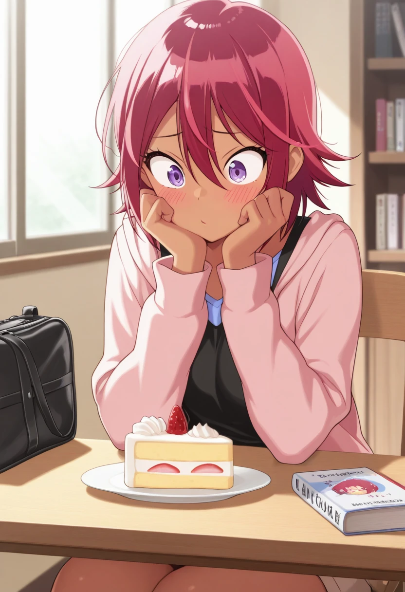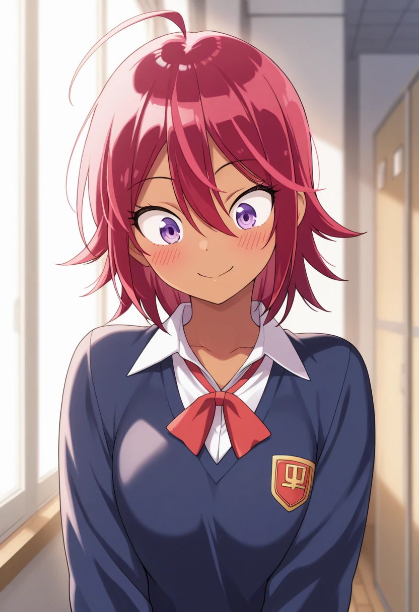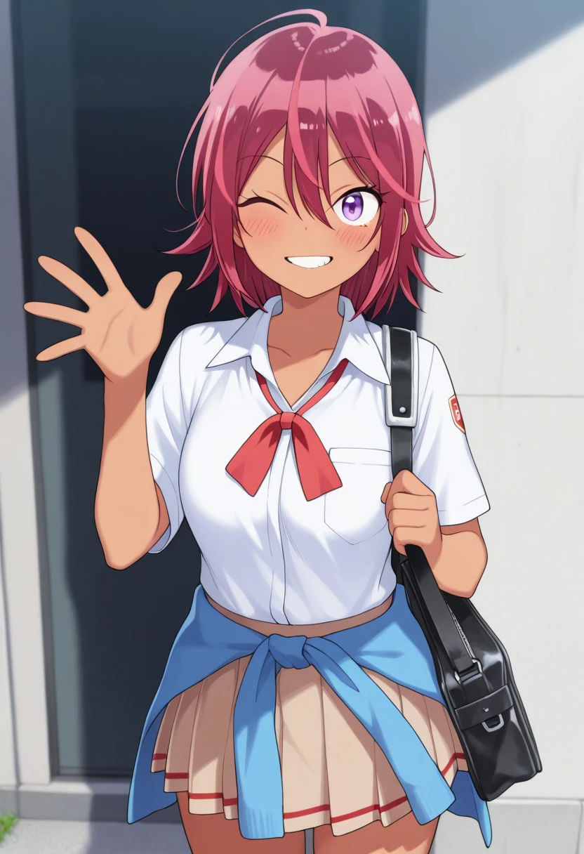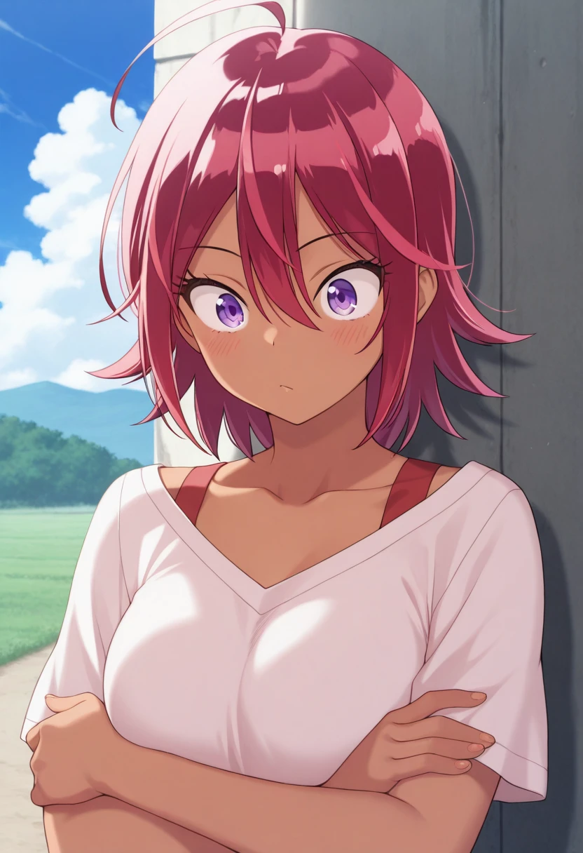 Trigger Words: takemoto uruka, dark skin, dark-skinned female, red hair, short hair, purple eyes