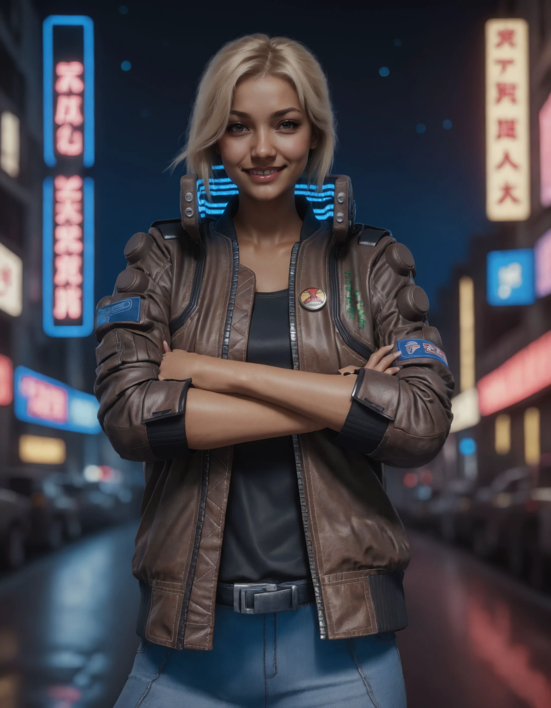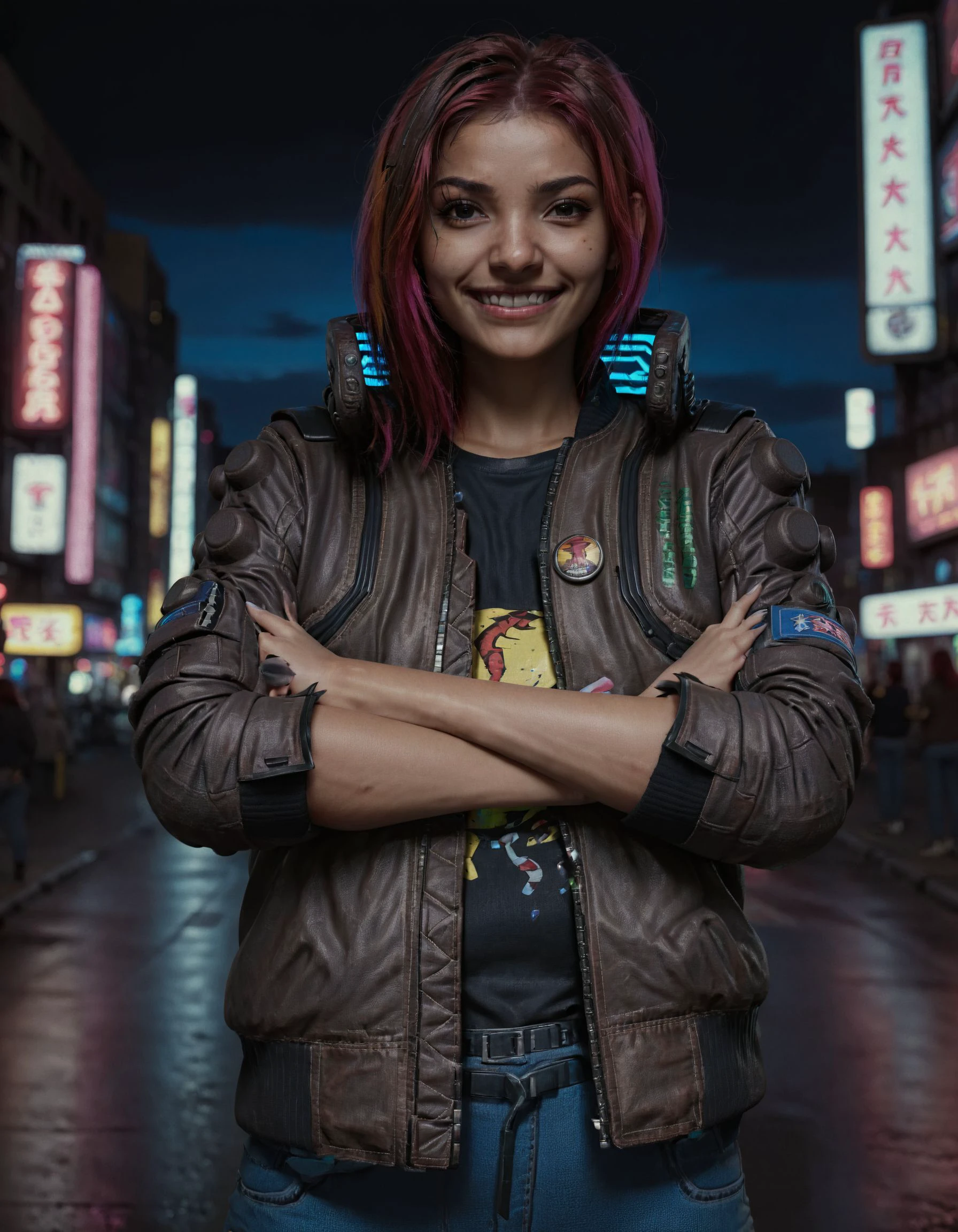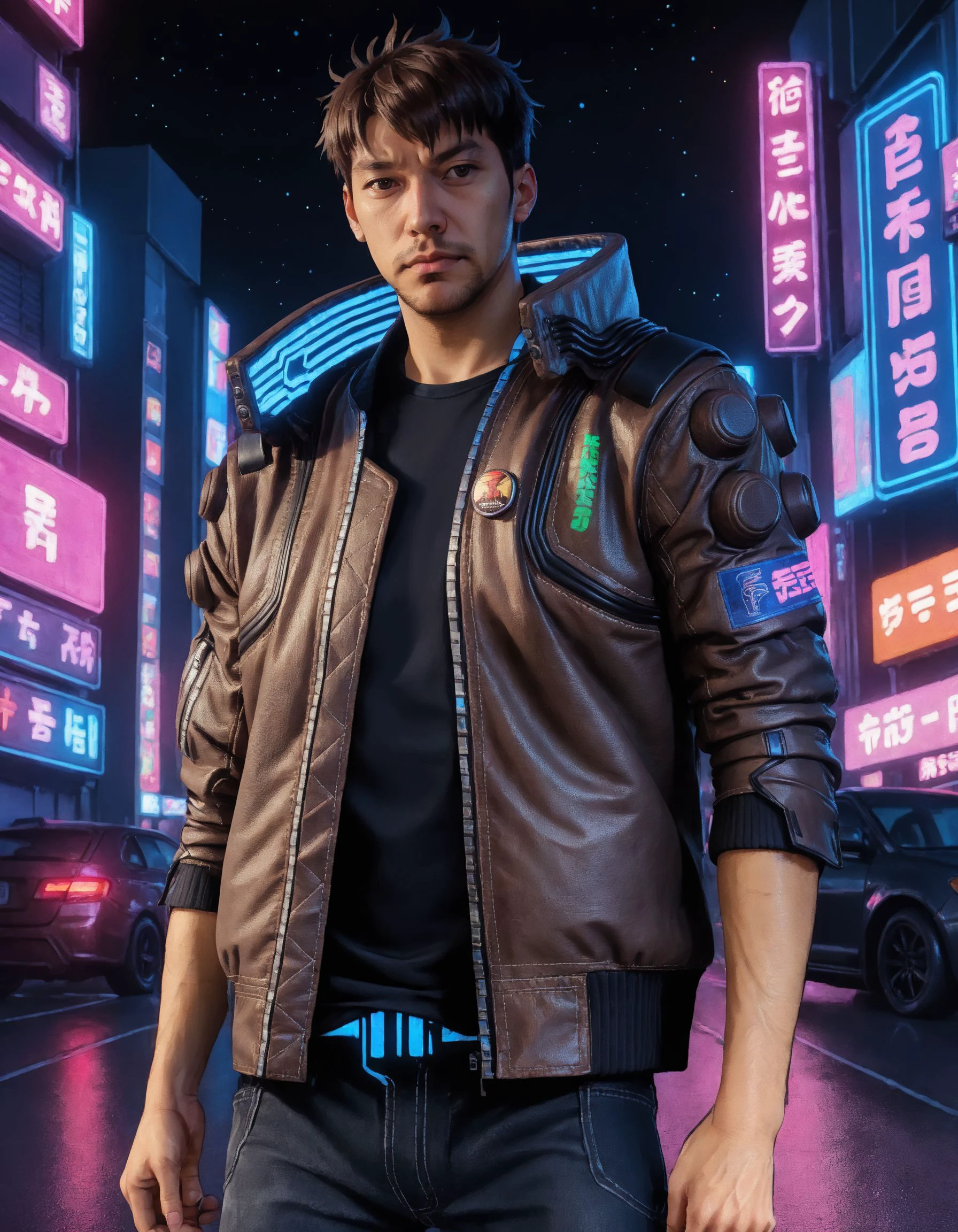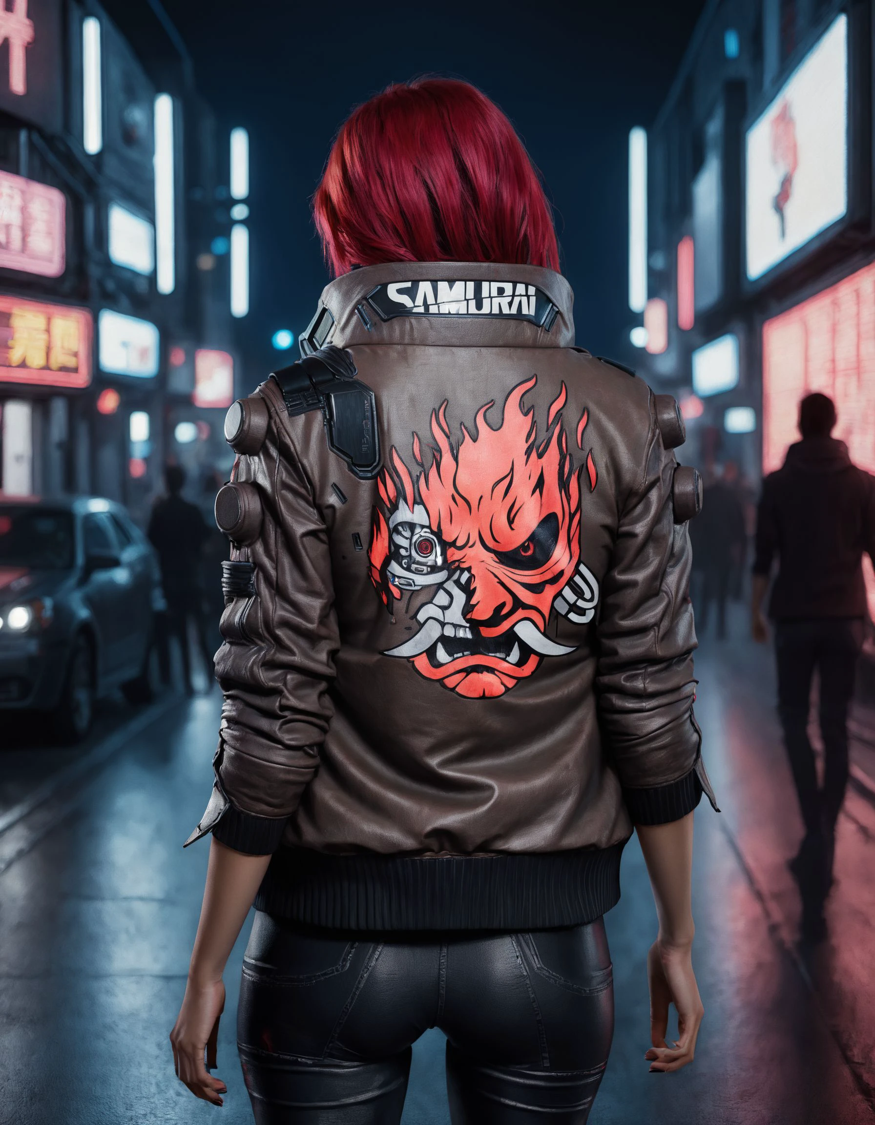 I wanted to give clothing training a shot, especially since it is supposed to be the hardest type of training... I must have trained this model about 13 times! I tried my best to get all of the characteristics of the jacket into the model. Unfortunately, there aren't many cosplay photos where the jacket is a 1:1 copy of what we see in the Cyberpunk 2077 game. I have a replica of the jacket that is somewhat close that I was able to get a few pictures in and add them to the dataset.