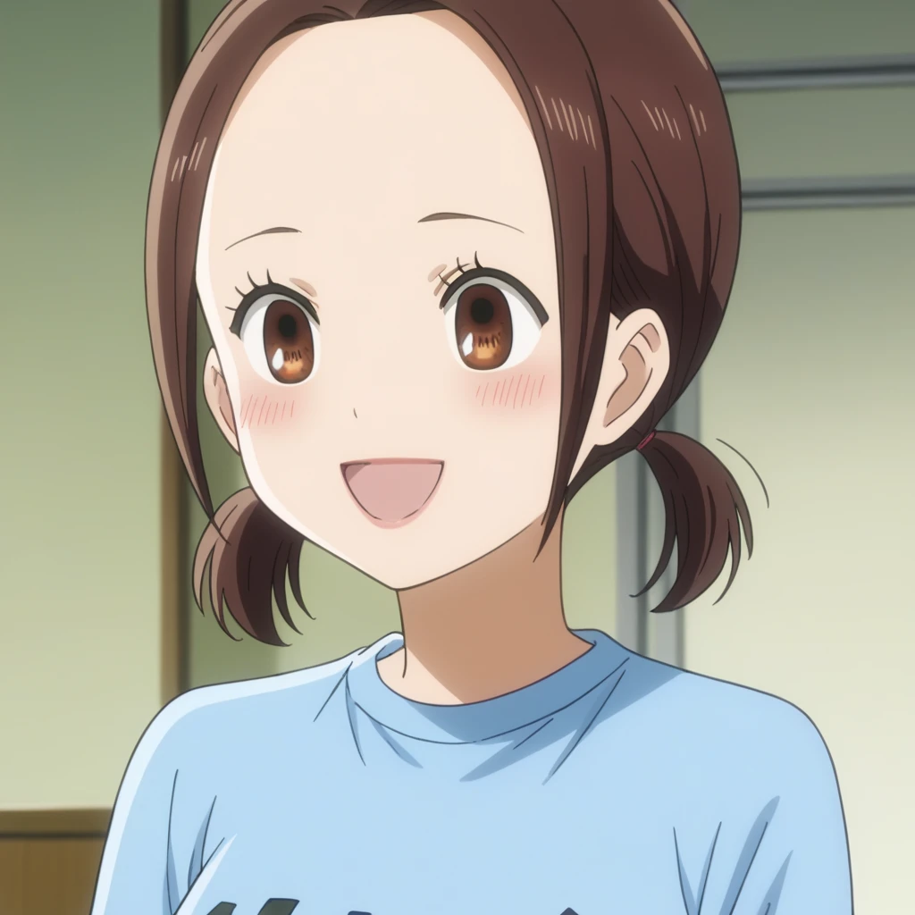 1girl, solo, kanade ooe, brown hair, short hair, brown eyes, twintails, short twintails, large breasts