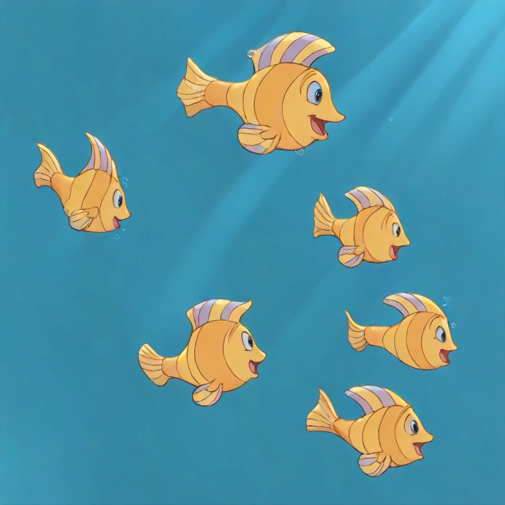 HiMelody, 1fish, multiple fishes, fish, animal, animal focus, yellow skin, striped, fins, no humans