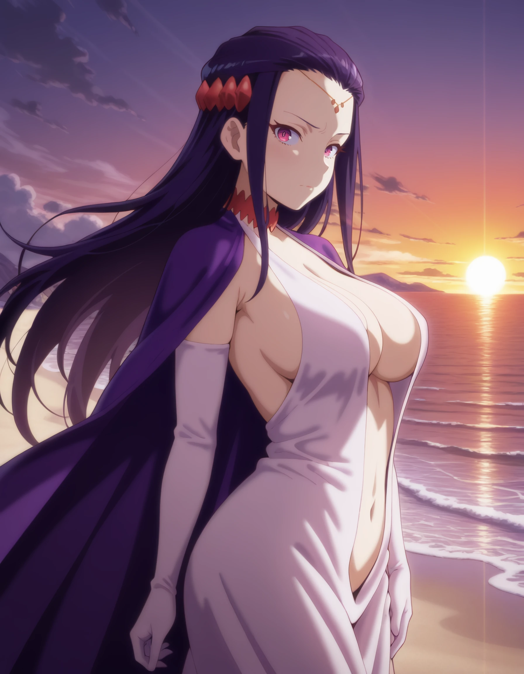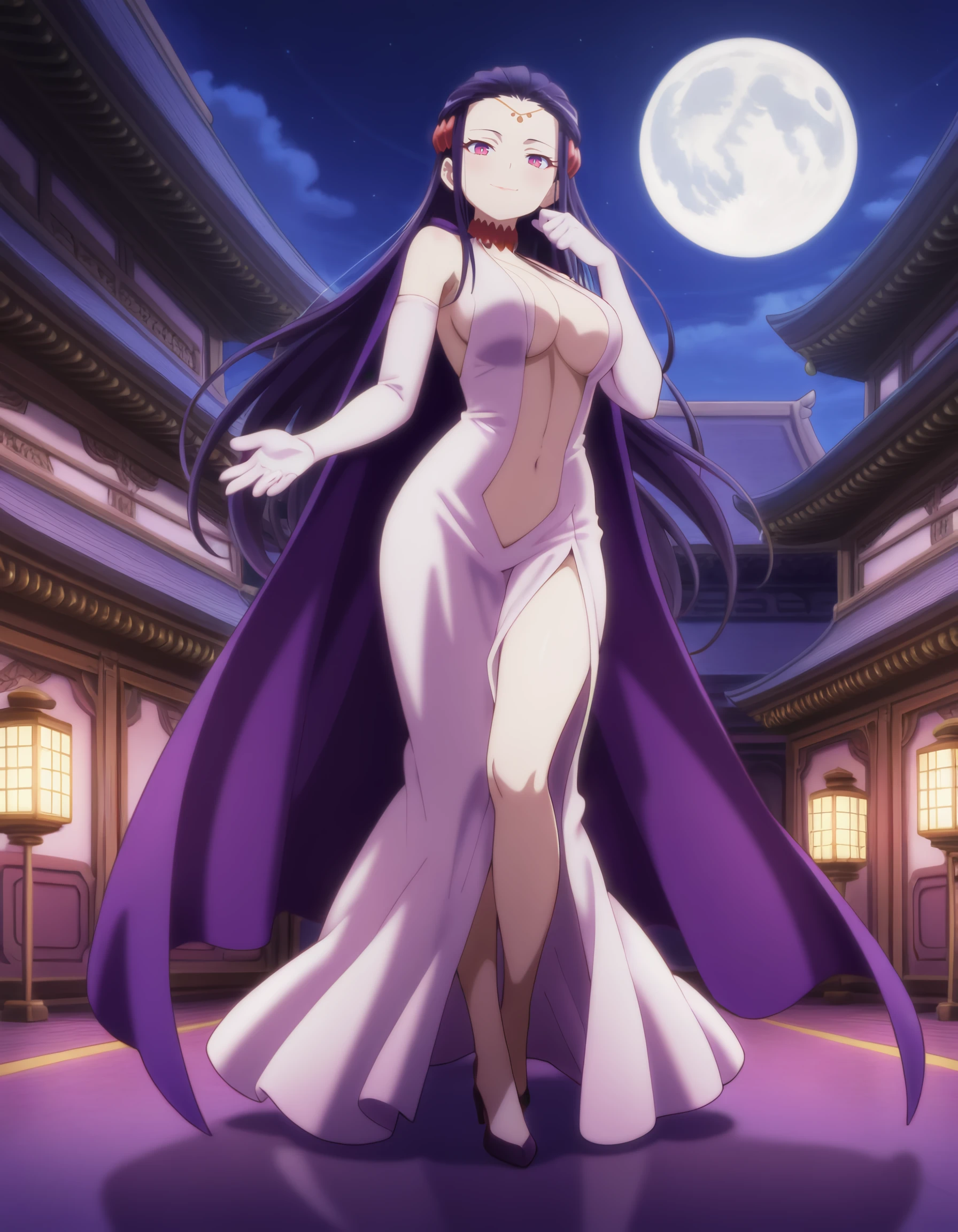elbow_gloves, white_gloves, white_dress, large_breasts, cleavage