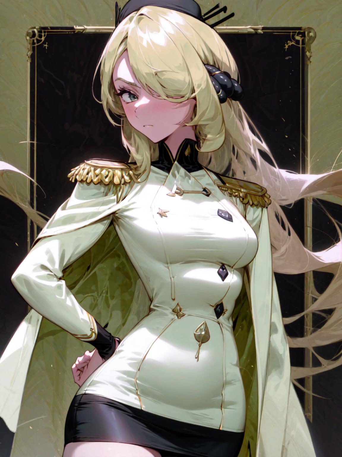 From behind if not prompting for the coat, the shirt sleeves tend to have markings where the fur trims would usually be. I have no idea how to fix this yet. Maybe try lapels in the negative prompt?