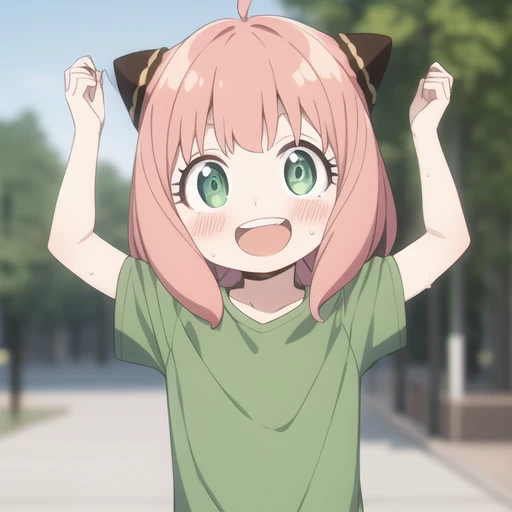 Missing features can be added: ahoge, female child, hairpods, medium hair, pink hair, green eyes,