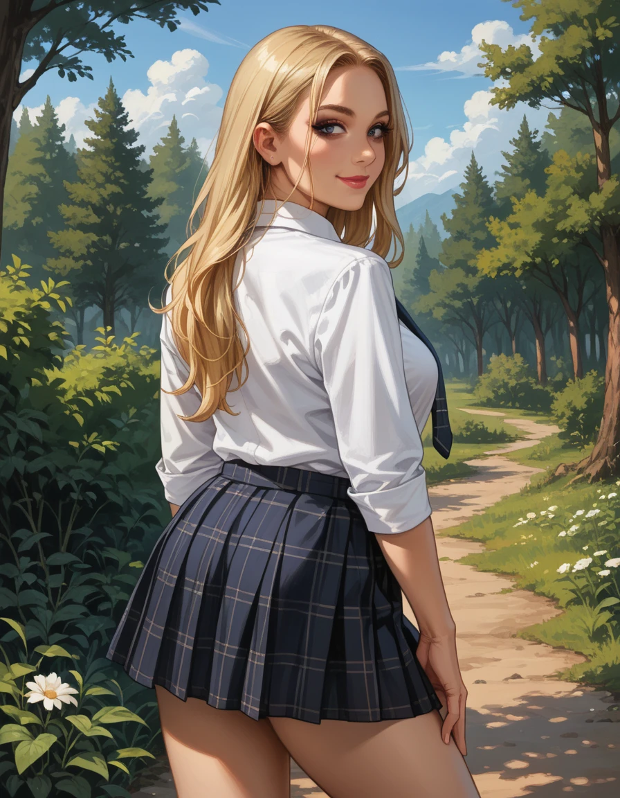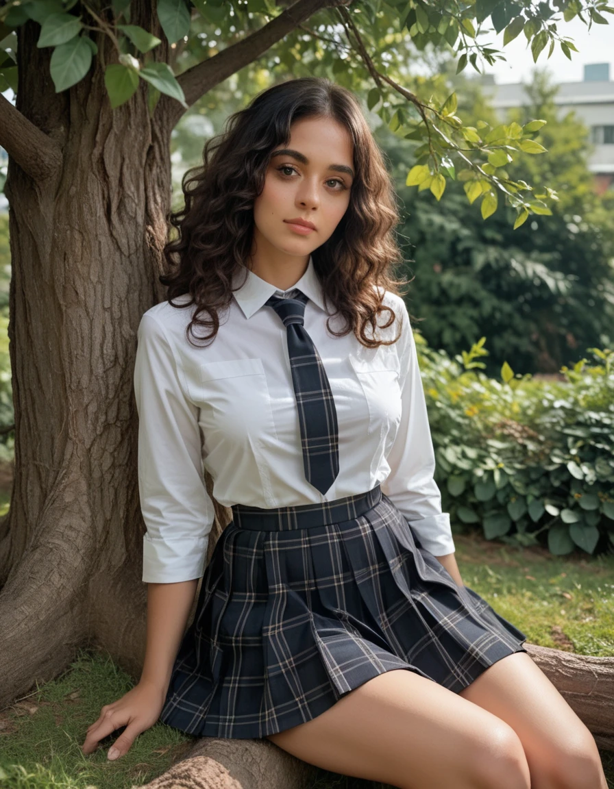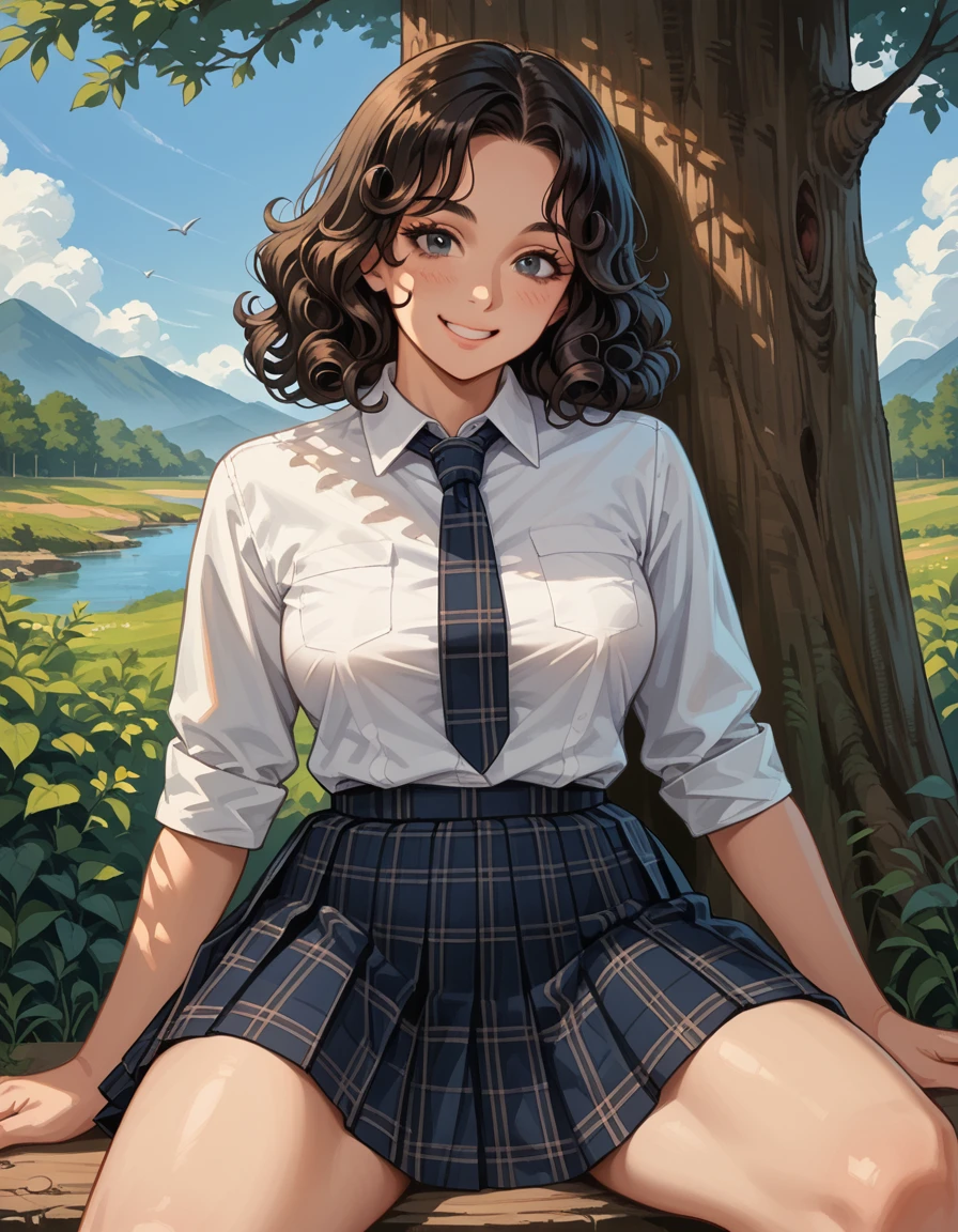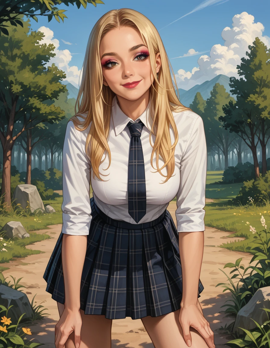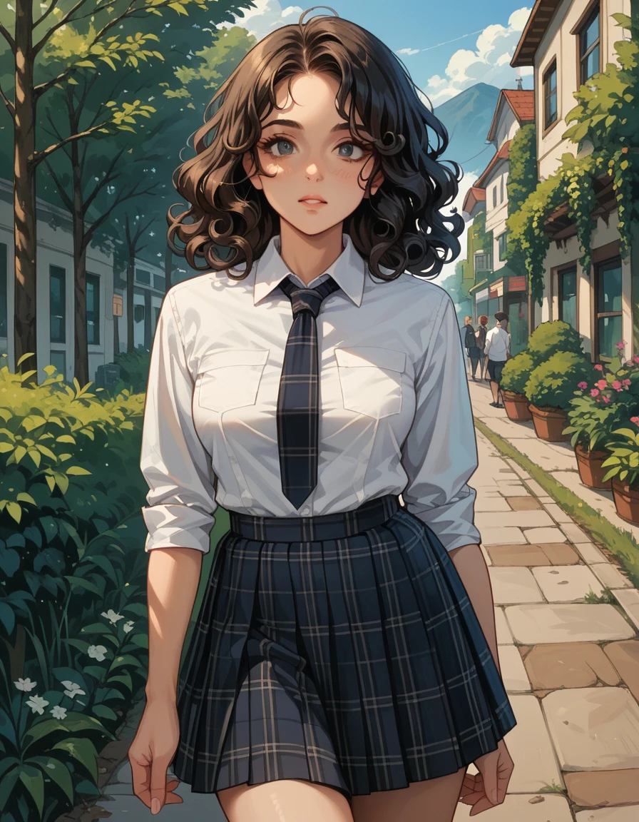 Keywords: hud_schgrl, white collared shirt, necktie, plaid pleated skirt