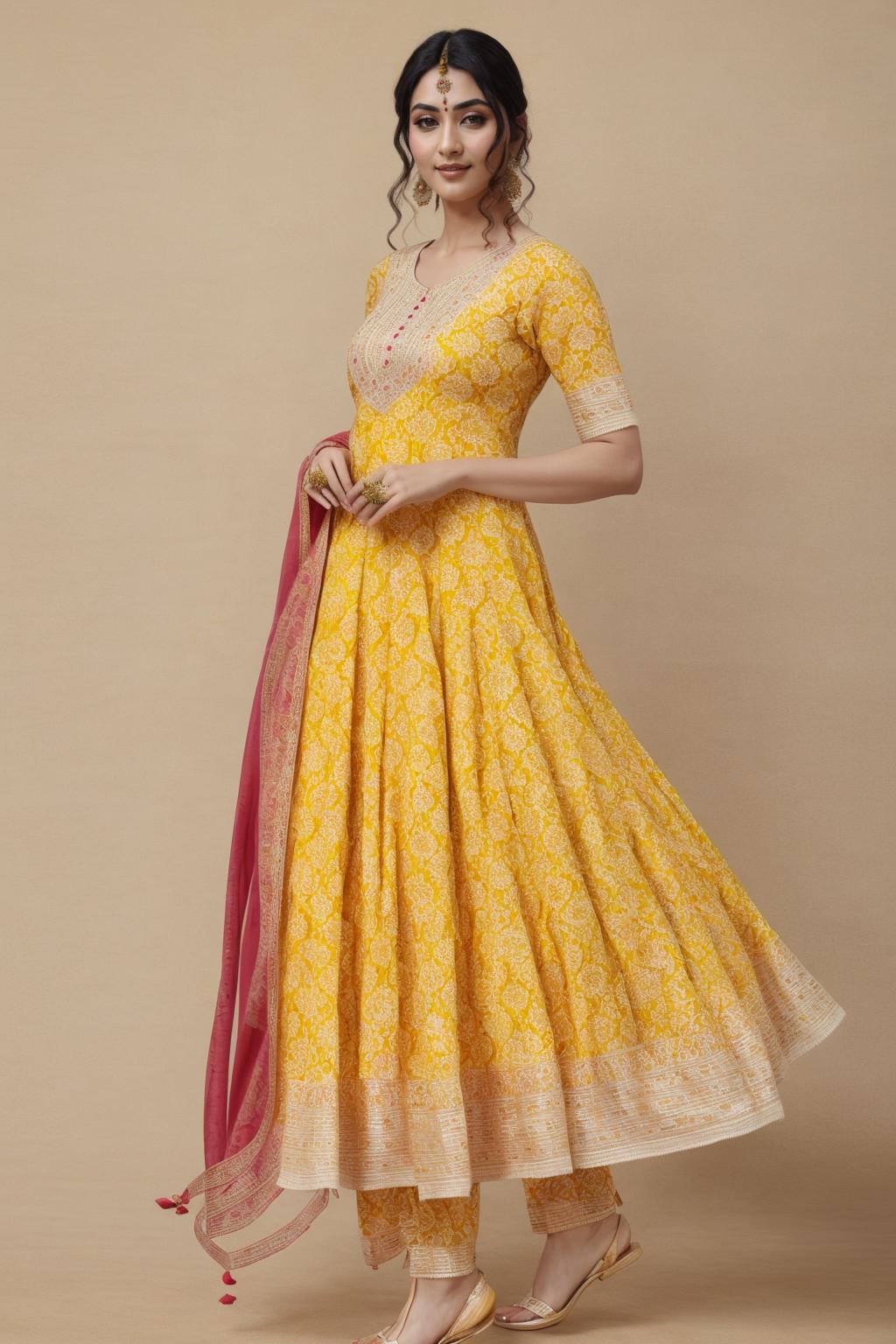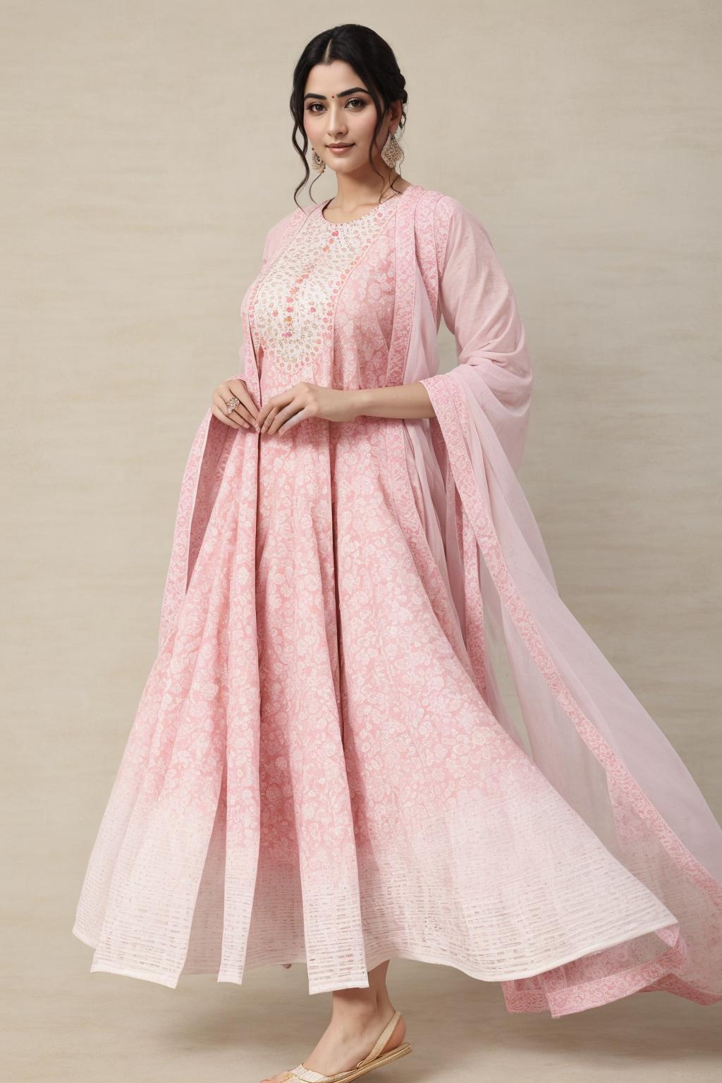 An anarkali salwar suit is a type of salwar kameez originating from India,during Mughal era. Indian actress Priyanka Chopra modeling an Anarkali suit. The anarkali suit is made up of a long frock-style top and features a slim fitted bottom. It varies in length and embroidery such as floor-length.
