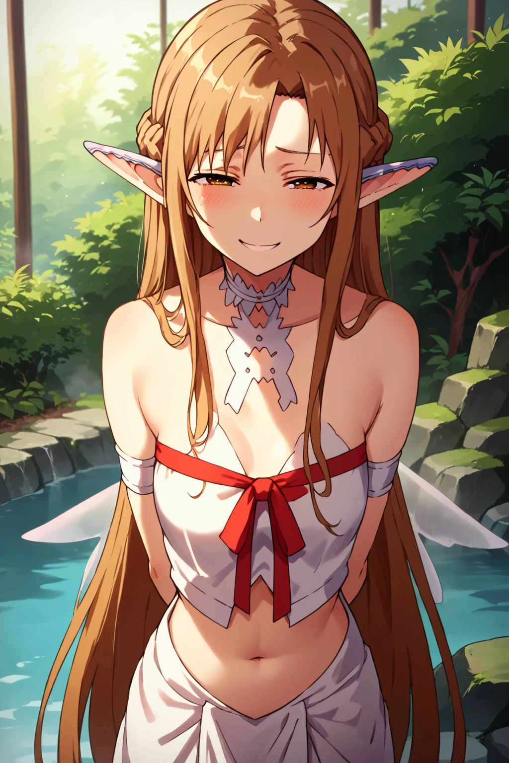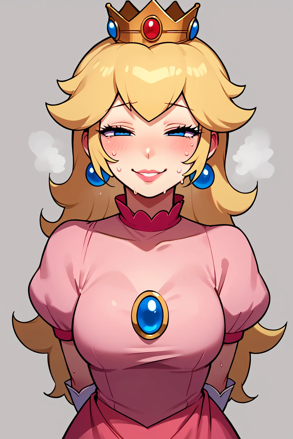 Recommended tags: false smile, forced smile, half-closed eyes, blushing