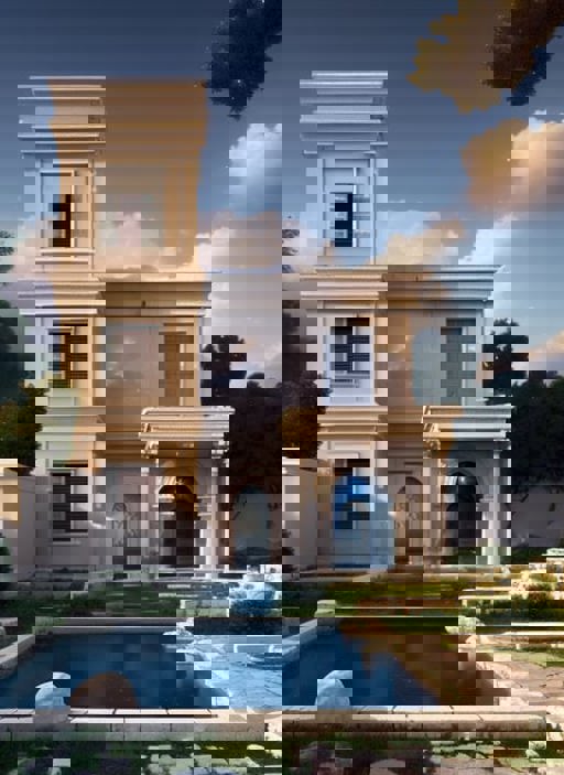 Houses interior and exteriors may have a roman greek ancient architecture feel