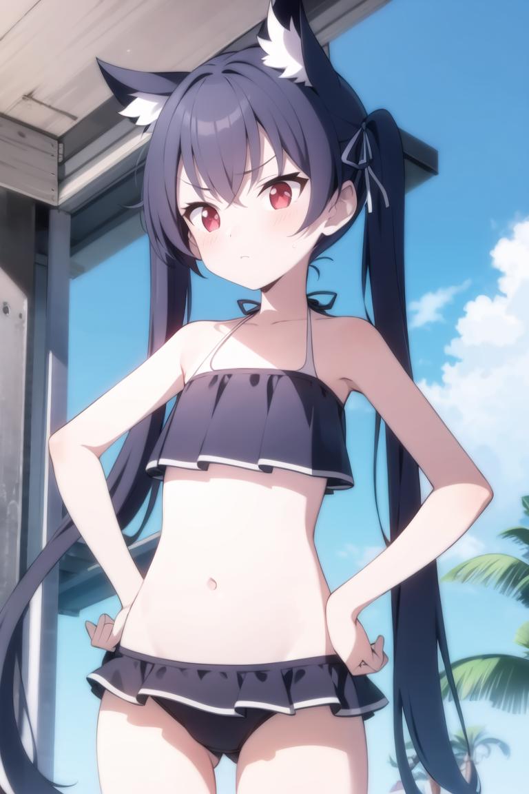 Weight 1 works well. Prompting; baserika, twintails, long hair, hair ribbon, red eyes will trigger her general appearance. baserika is the trigger token, but unfortunately this LoRA needs a little extra.