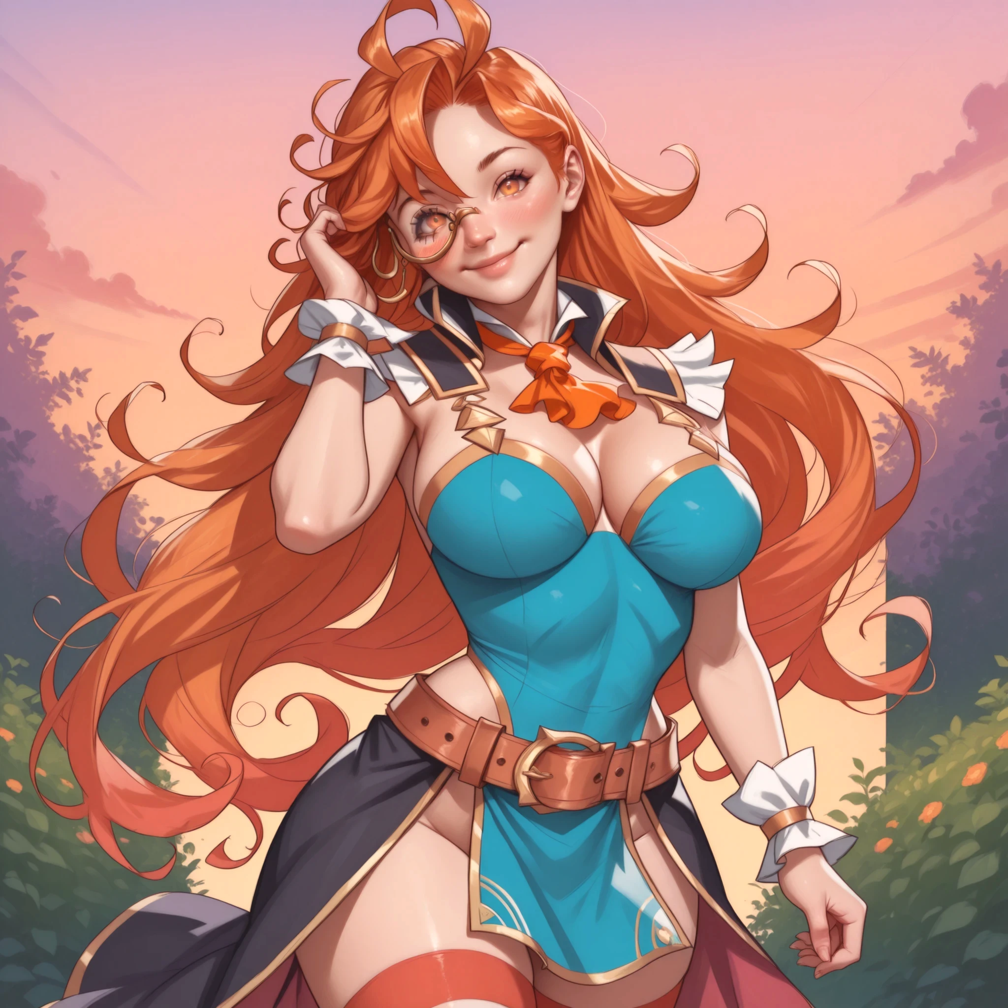 defaultsinoa, loose hair, messy hair, monocle, belt, waist cape, thighhighs,