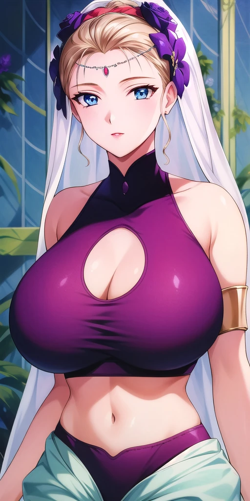 arabian_clothes_Purple_crop_top_Puffy_pants_Armlet_jewel_Cleavage_cutout: Her classic arabian nights style outfit. I trained it to be bare and should be paired with her Flower_headdress, veil, circlet and blue_shawl.
