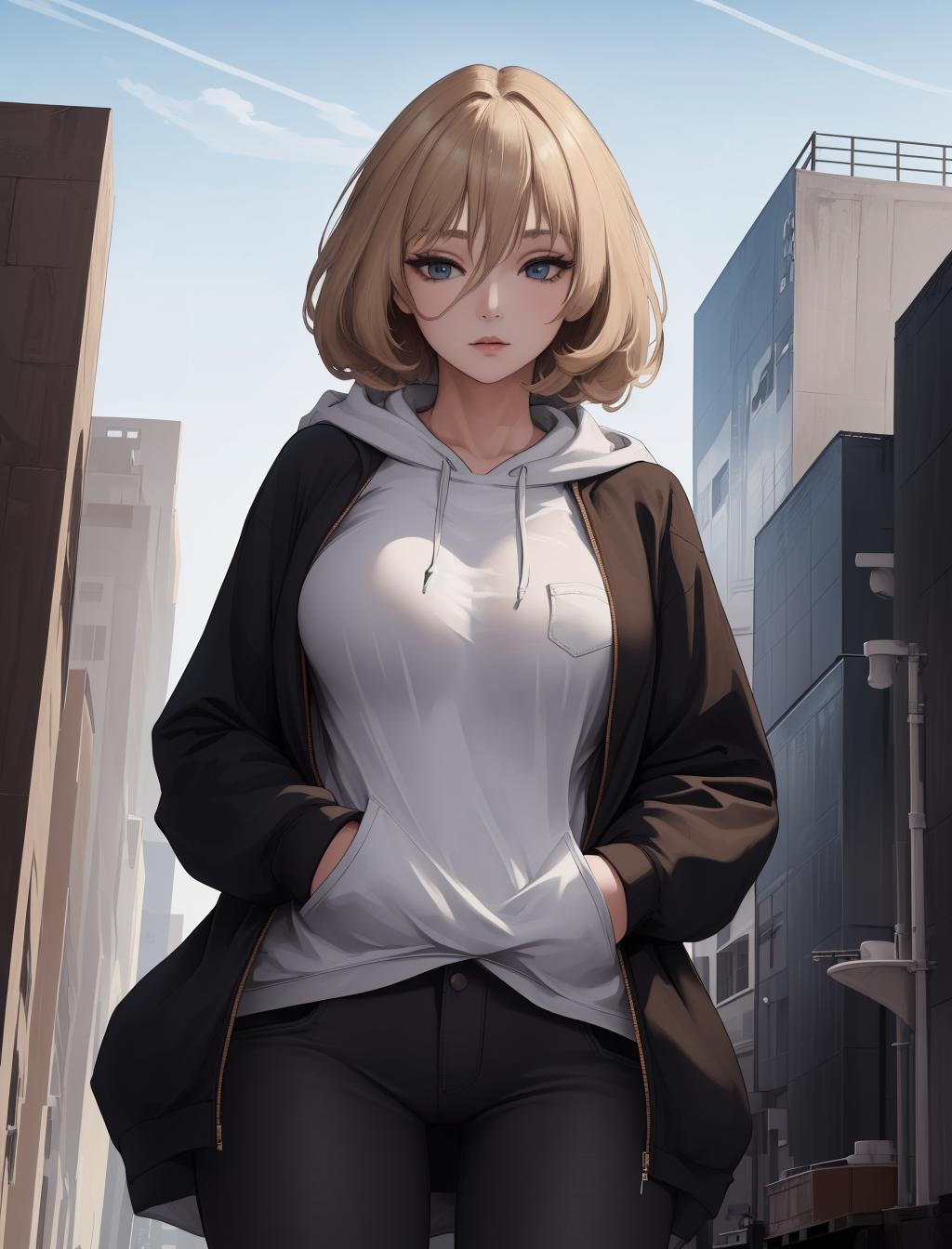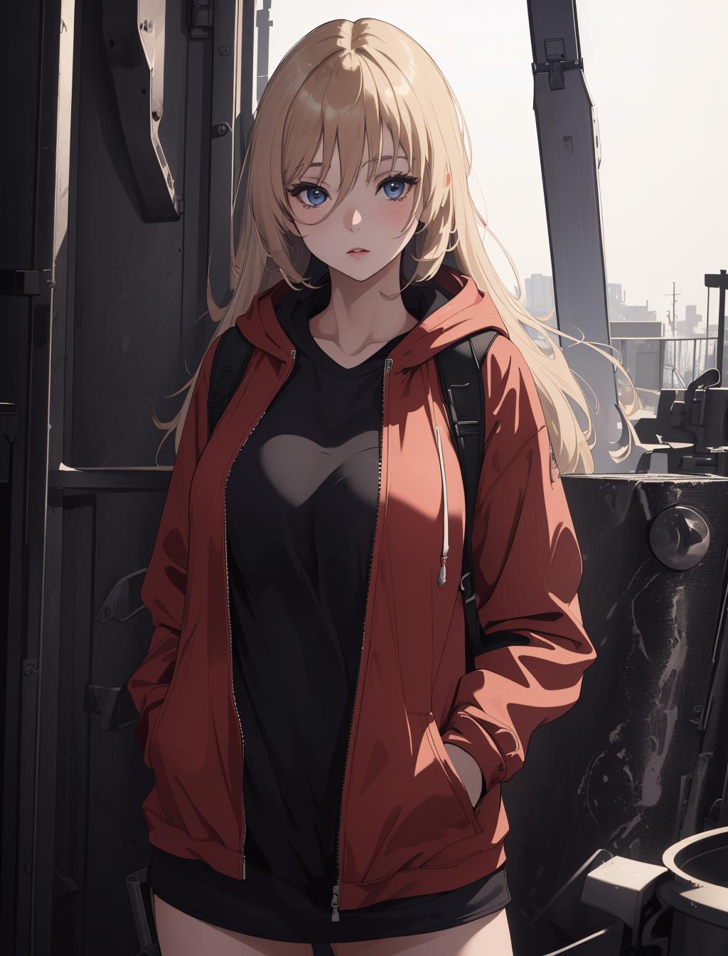As she is tying hair in official art, I did not delete "high ponytail", so you can adjust her hairstyle.