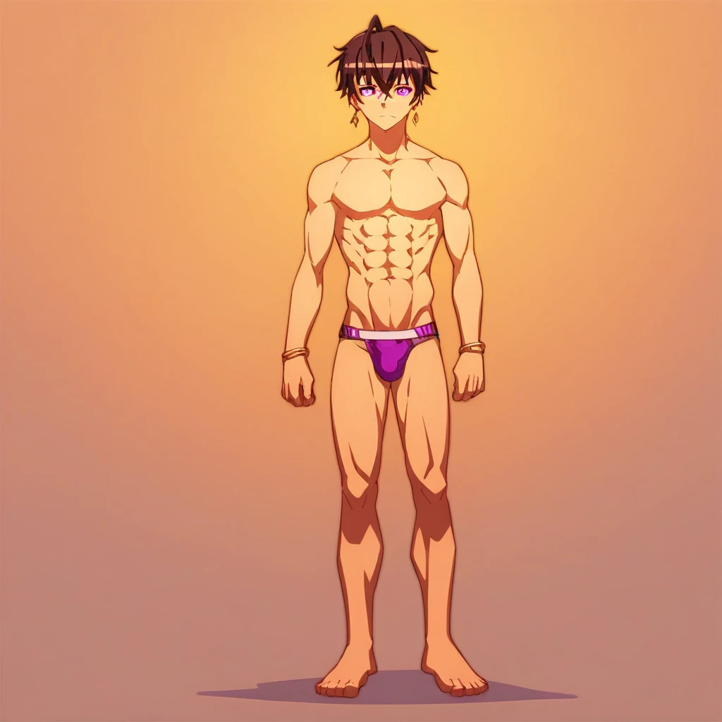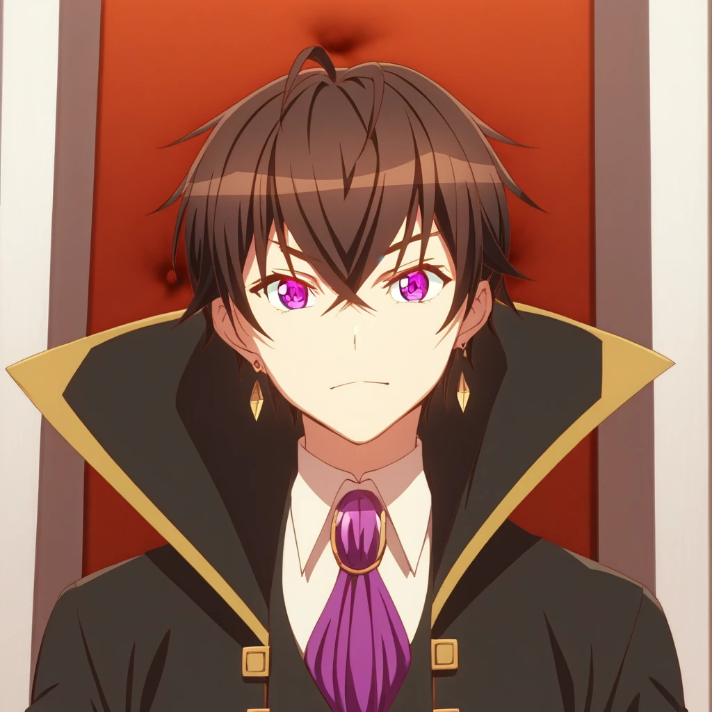 Liam Sera Banfield, 1boy, male focus, solo, black hair, purple eyes, earrings, jewelry, brown hair,