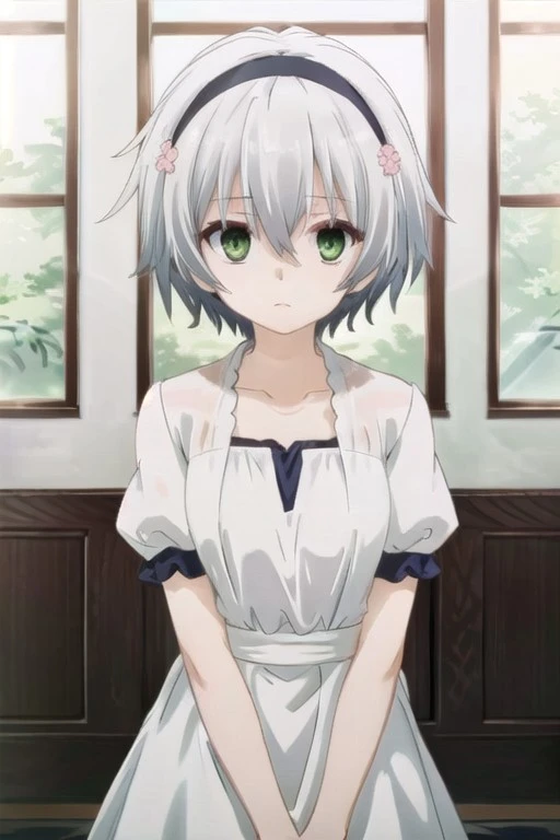 Trigger Words: kurogane shizuku, short hair, green eyes, silver hair