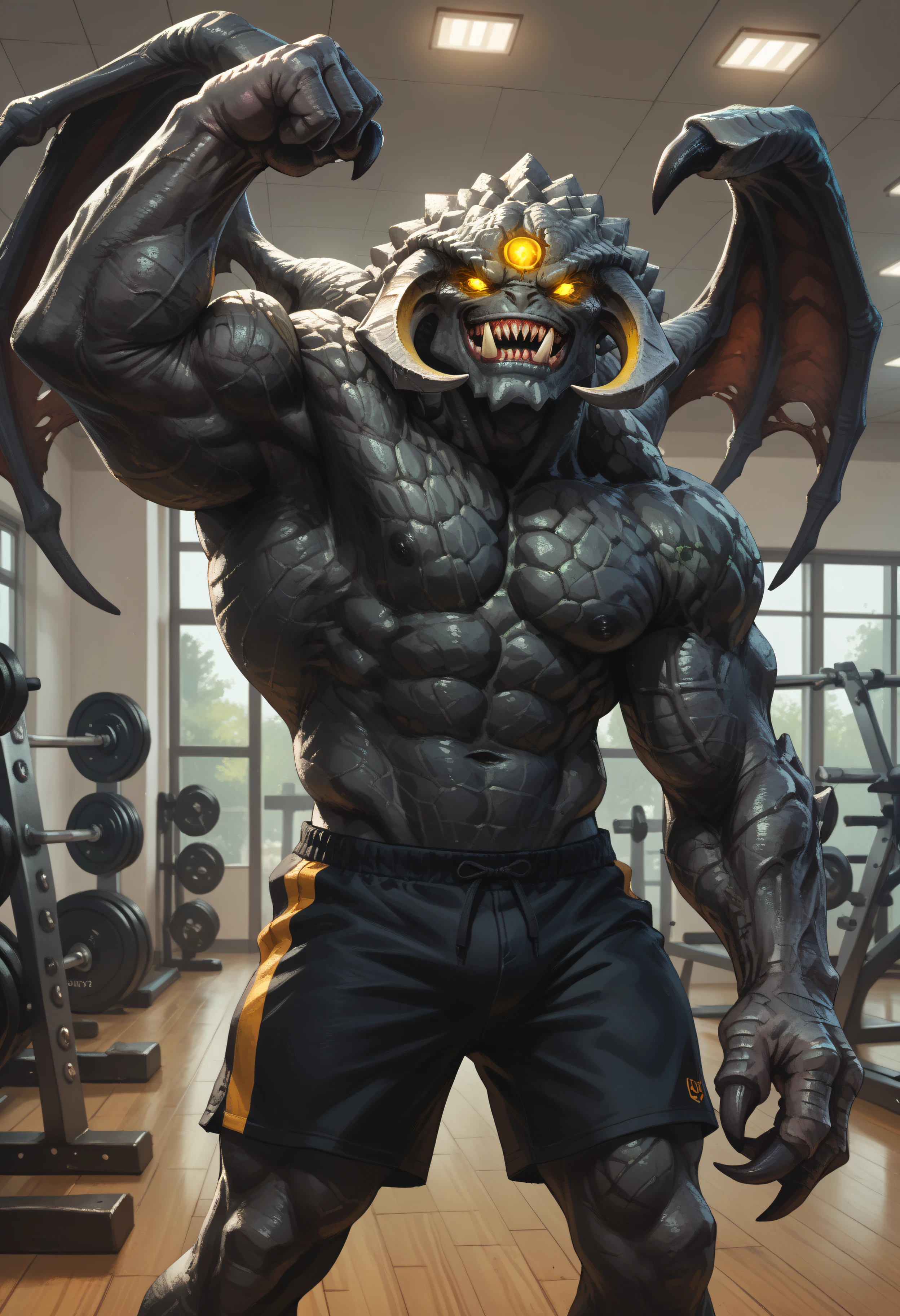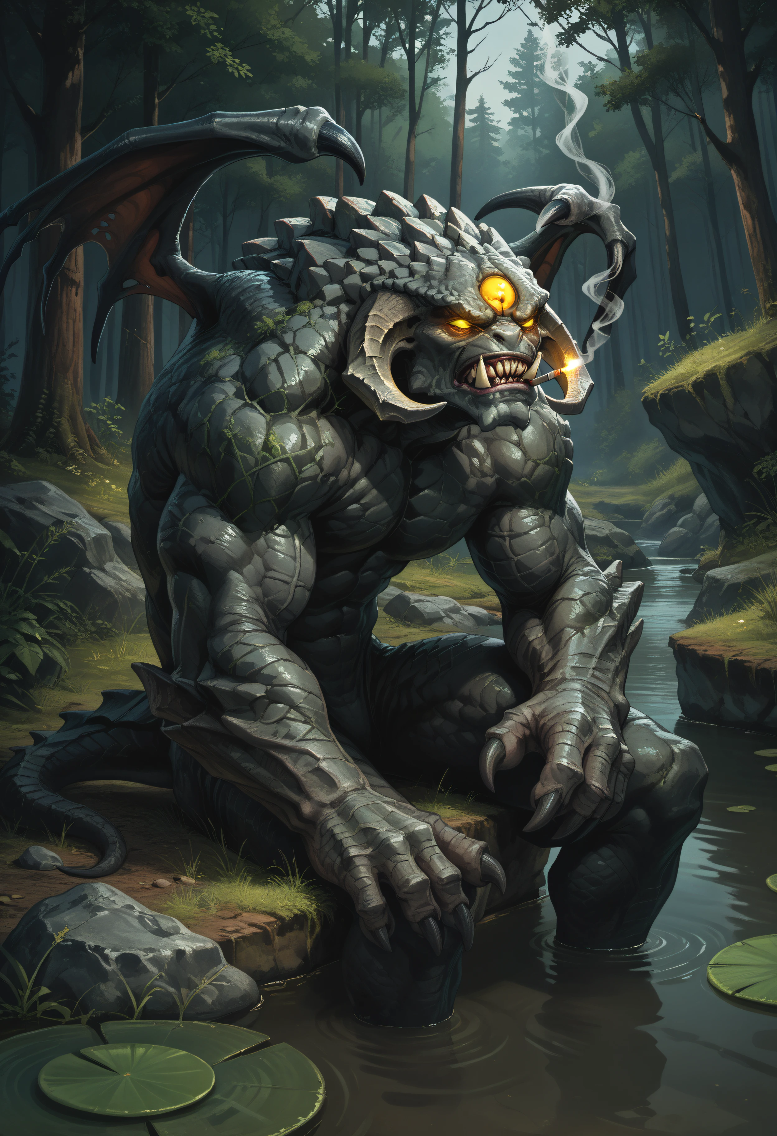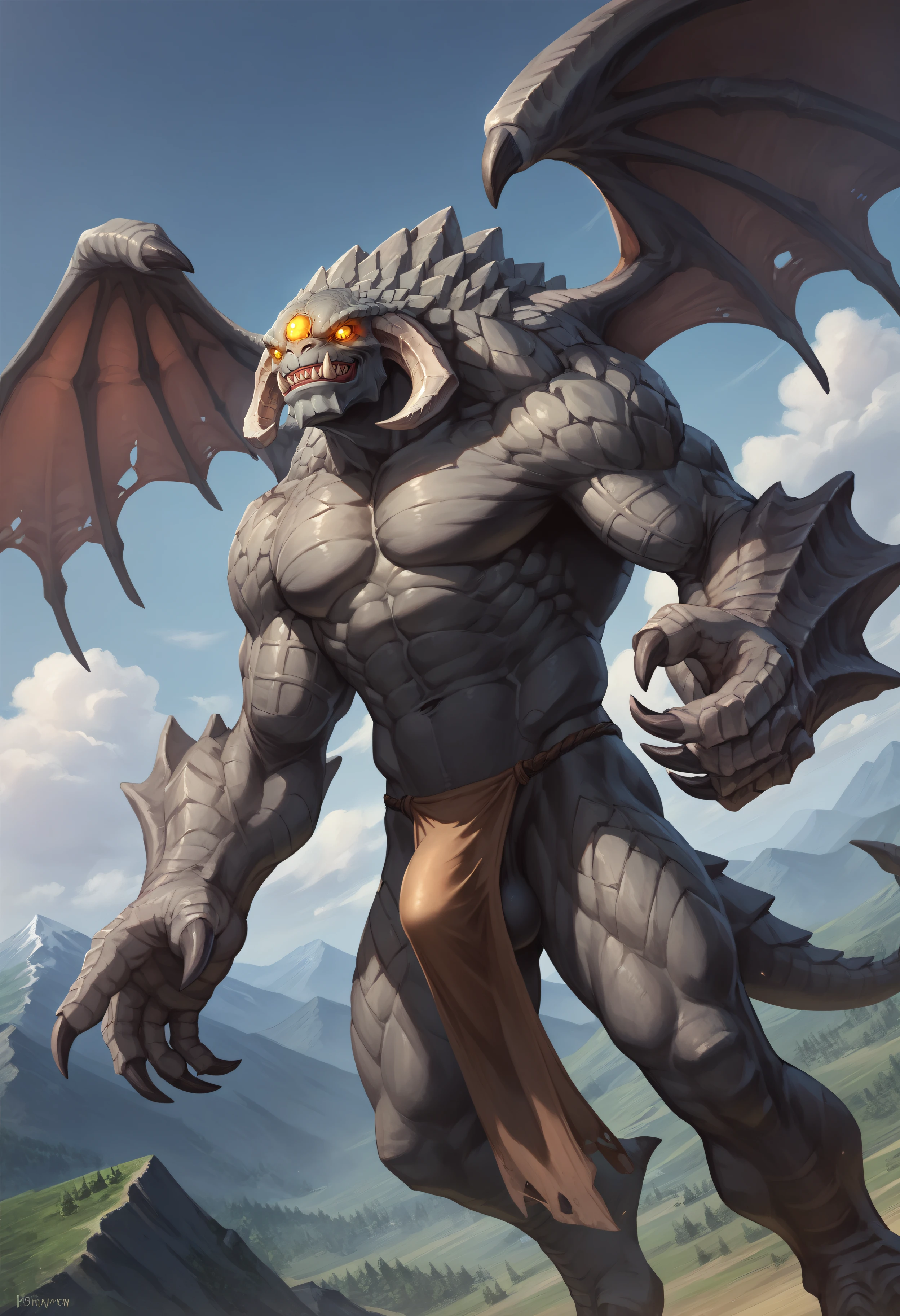 Reinforcement tags: teeth, monster, wings, sharp teeth, claws, yellow eyes, glowing eyes