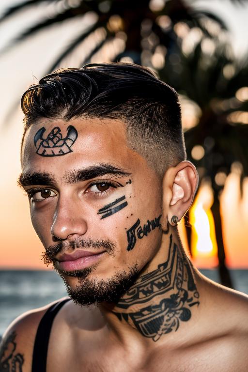 For example, here are some comparisons using Homoerotic v2 (which, while being a good model, sadly cannot do face tattoos very well), without/with this LoRA: