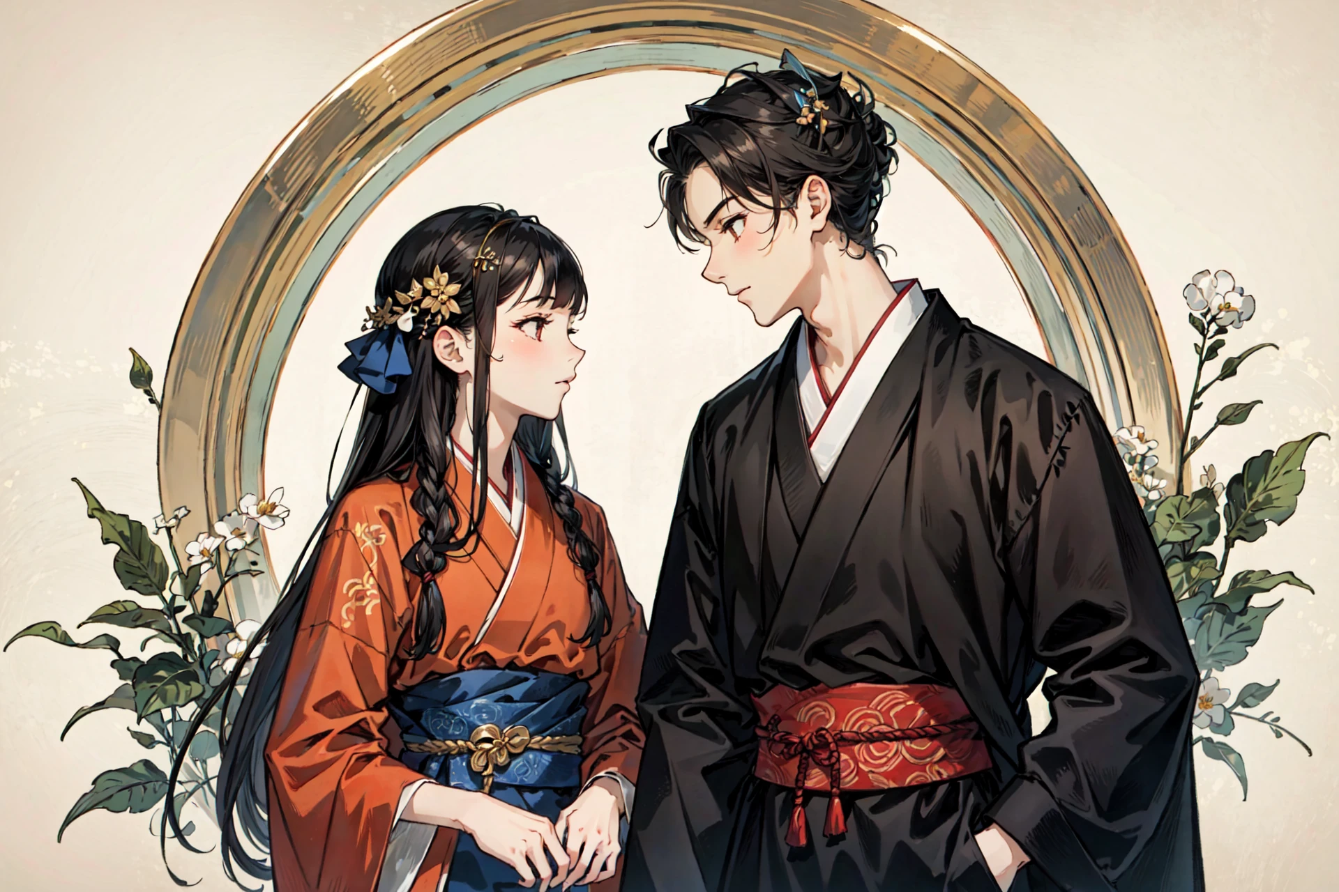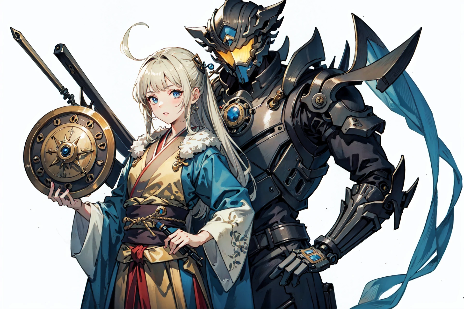 Shin Yun-bok, Kim Hong-do, and Ukiyo-e lora combined steampunk girl and oriental punk mix.