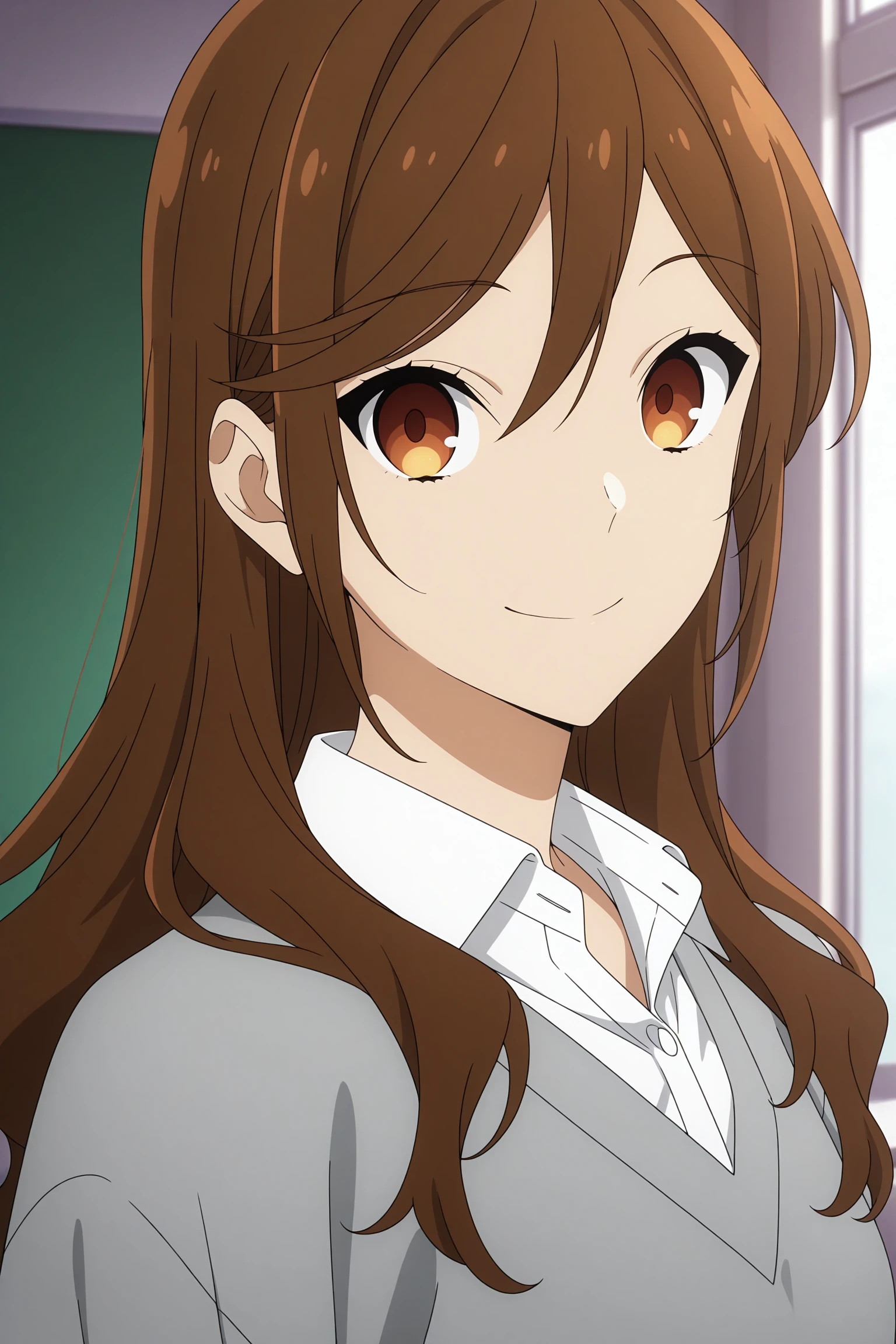 hori kyouko, long hair, brown hair, swept bangs, hair between eyes