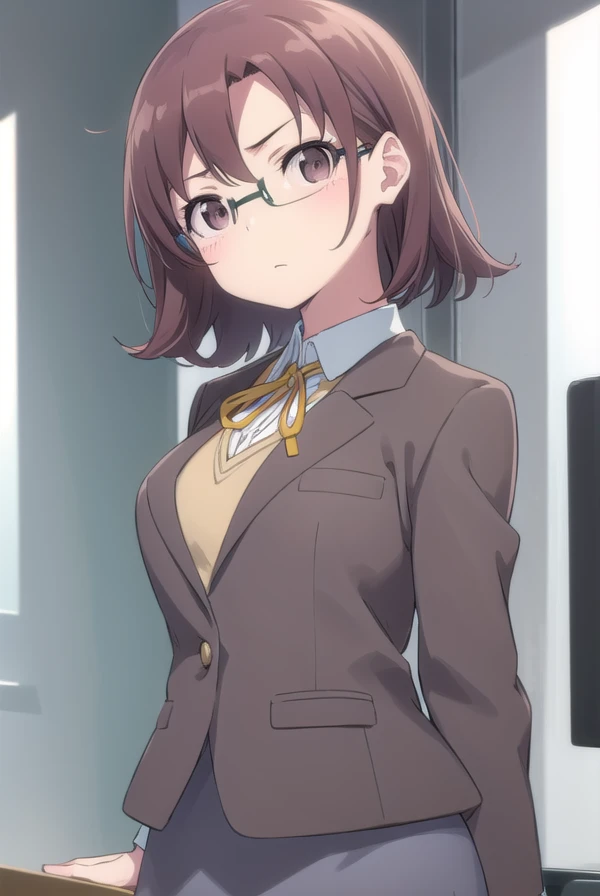 sena akagi, short hair, brown hair, glasses, (brown eyes:1.5),