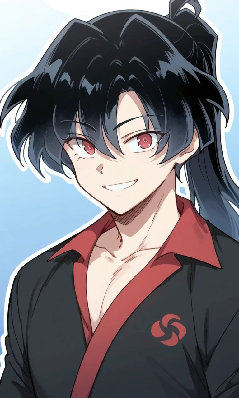 Trigger words: chung myung,black hair,ponytail,long hair,red eyes,eyes visible through hair