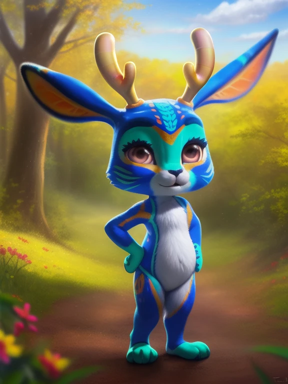 JackieSM, Jackalope, bunny, horns, purple eyes, bunny ears, rabbit legs, chibi,