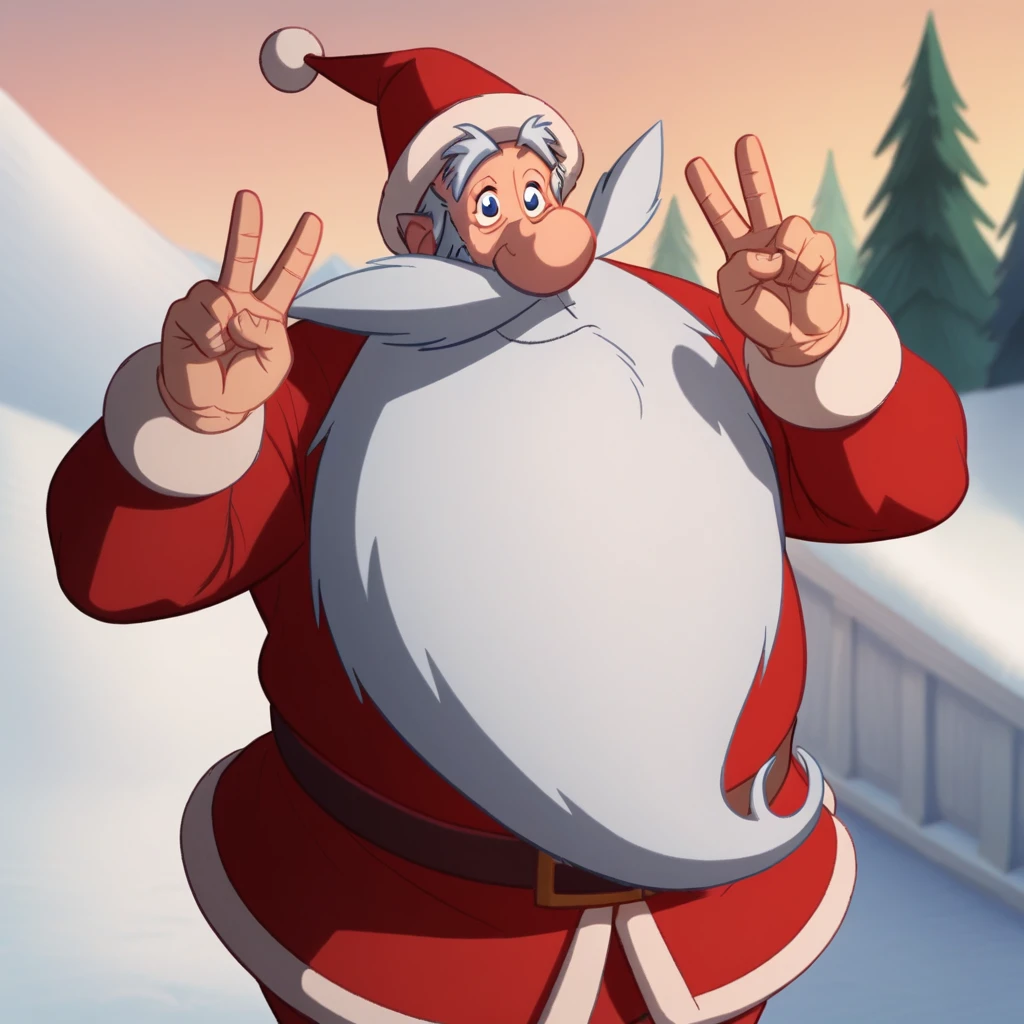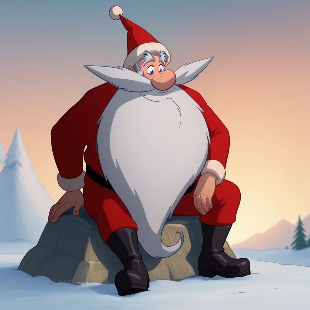 solo, 1boy, santa, white beard, thick mustache, blue eyes, fat man, santa hat,