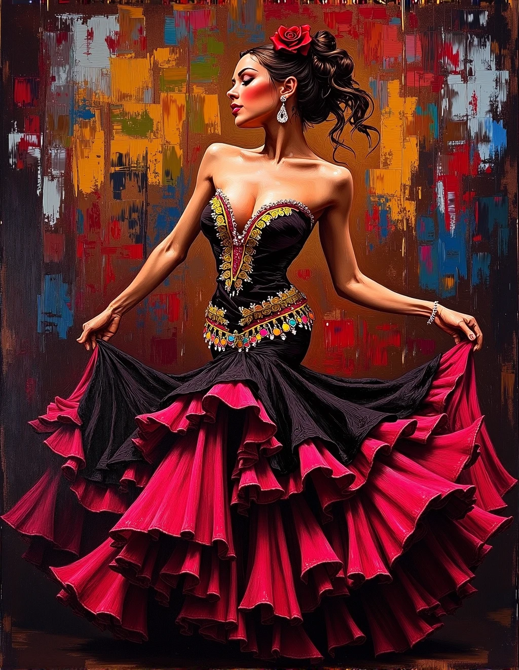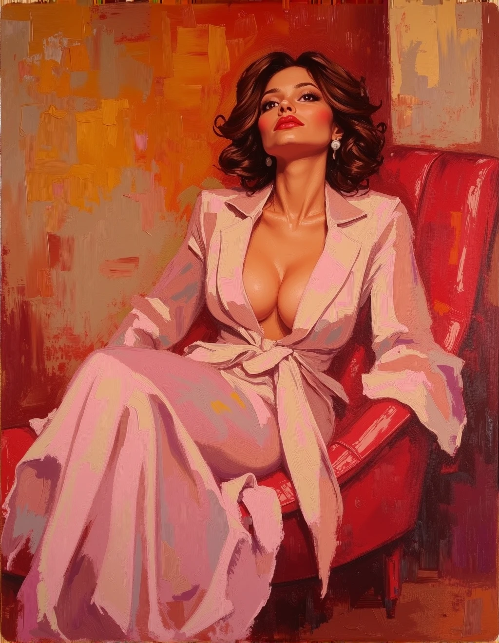 He employs a distinctive technique that combines loose brushwork with rich textures, creating a dynamic and textured surface that adds depth and dimension to his paintings. Atroshenko's use of vibrant colors, particularly in his depiction of clothing and backgrounds, enhances the visual impact of his compositions.