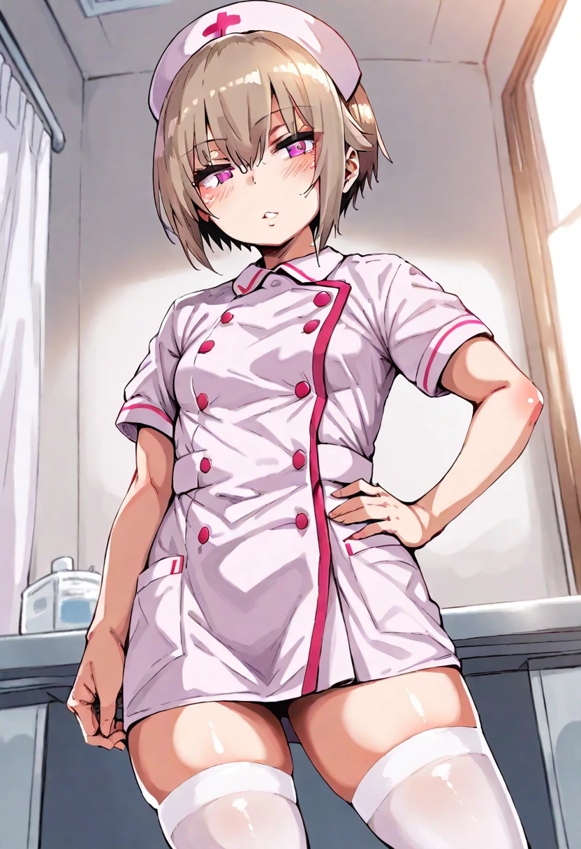 1girl,shiina,short hair,beige hair,purple eyes,
