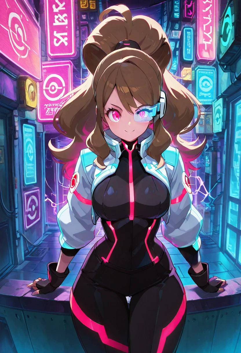 Imagine Pokémon Colosseum 3 is a cyberpunk setting, featuring all the Pokémon protagonists from each game. In this world, Hilda uses her high-tech scouter to detect shadow Pokémon and the powerful Lux Volt to snag them back into the light.