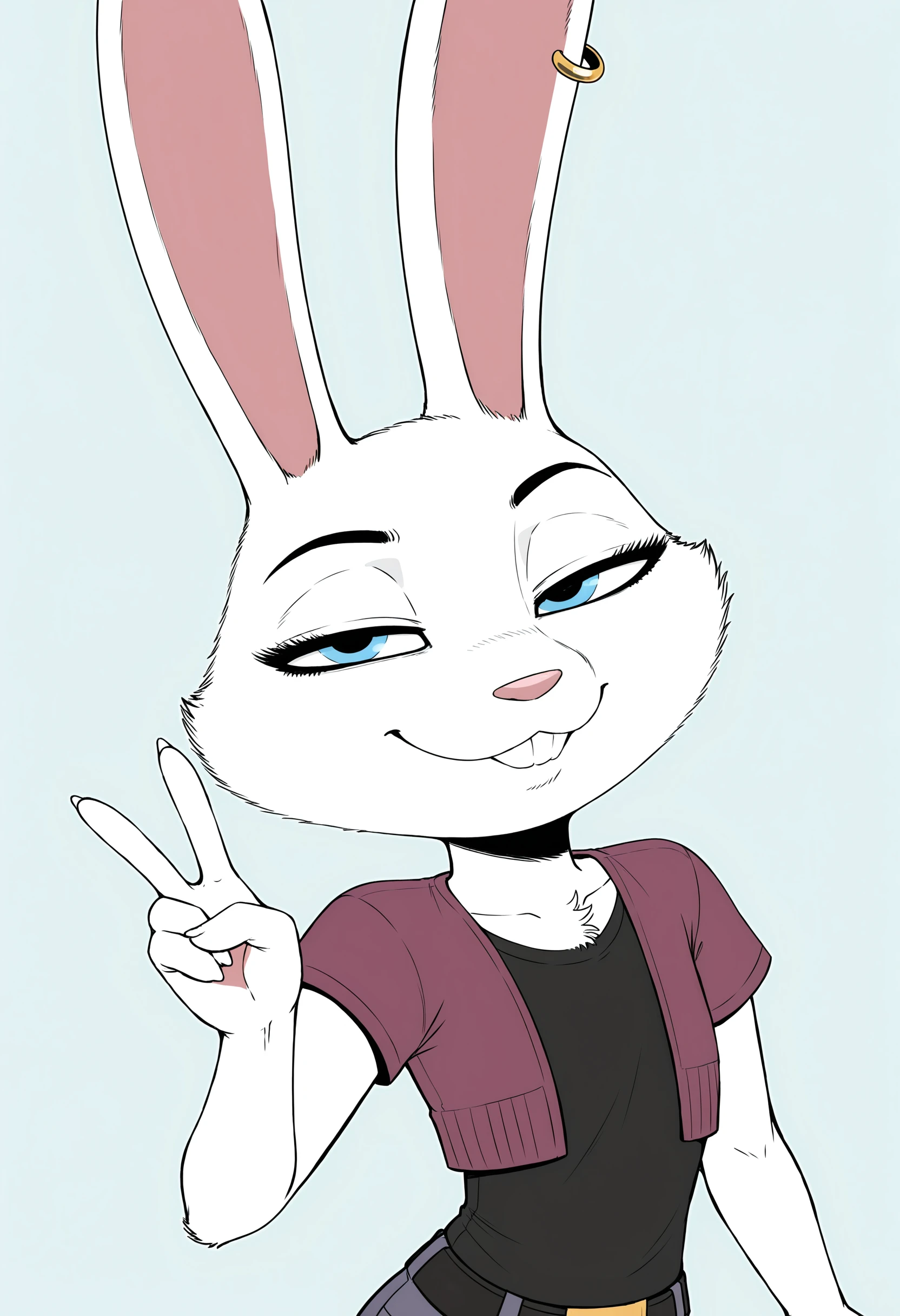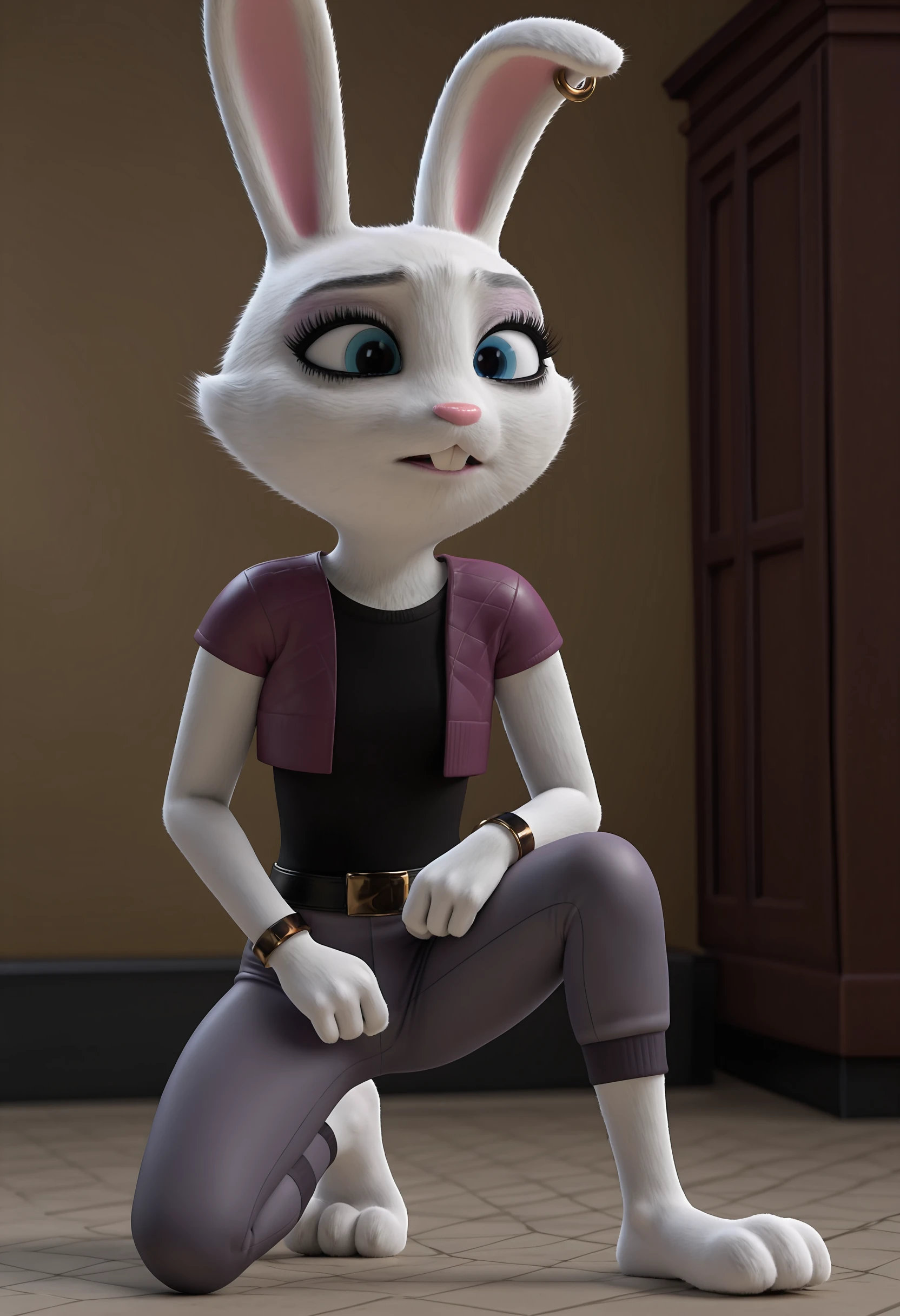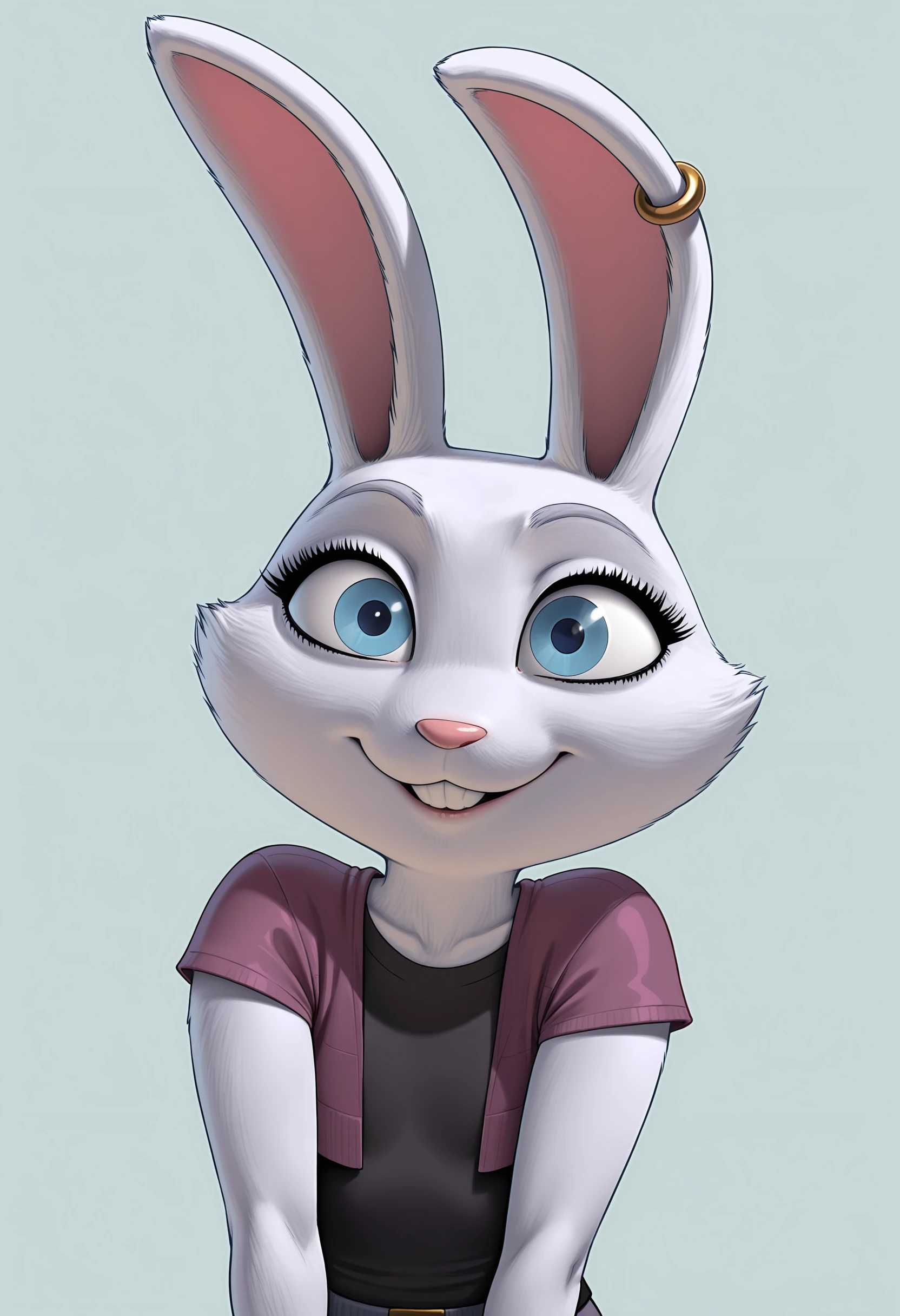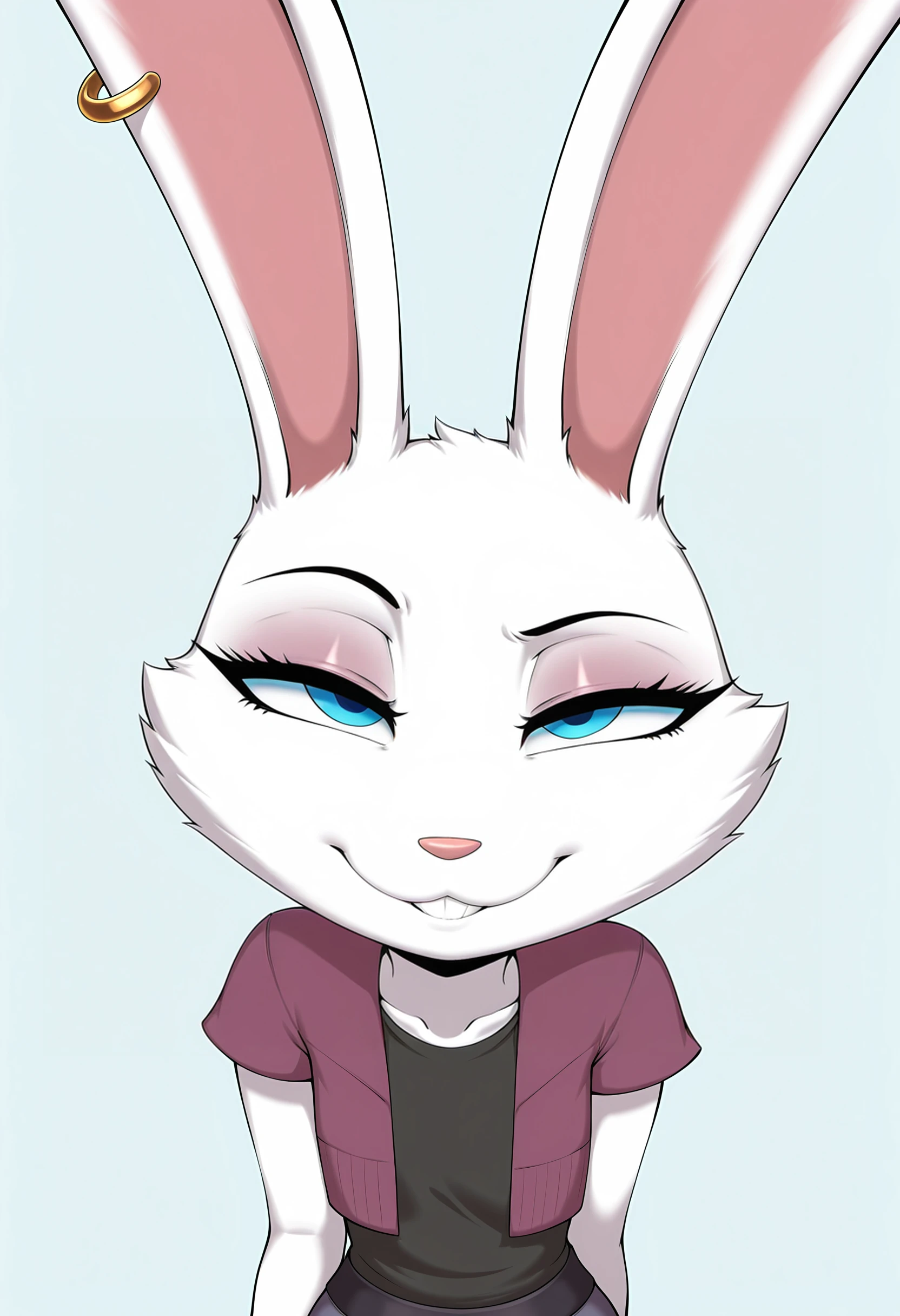 casilf, furry, blue eyes, shirt, earrings, pants